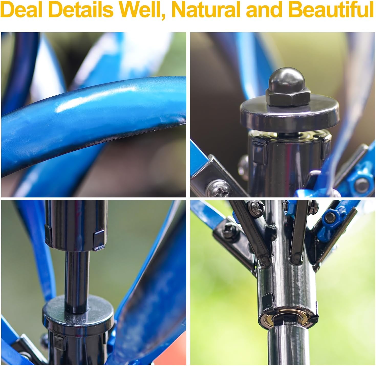 - 【Withstand All Weather】Stable pronged base stake design to keep the outdoor large wind spinner balanced and firmly placed. Hand-painted and UV treated to resist fading, so it is long-lasting and will perfom well as a garden decoration.