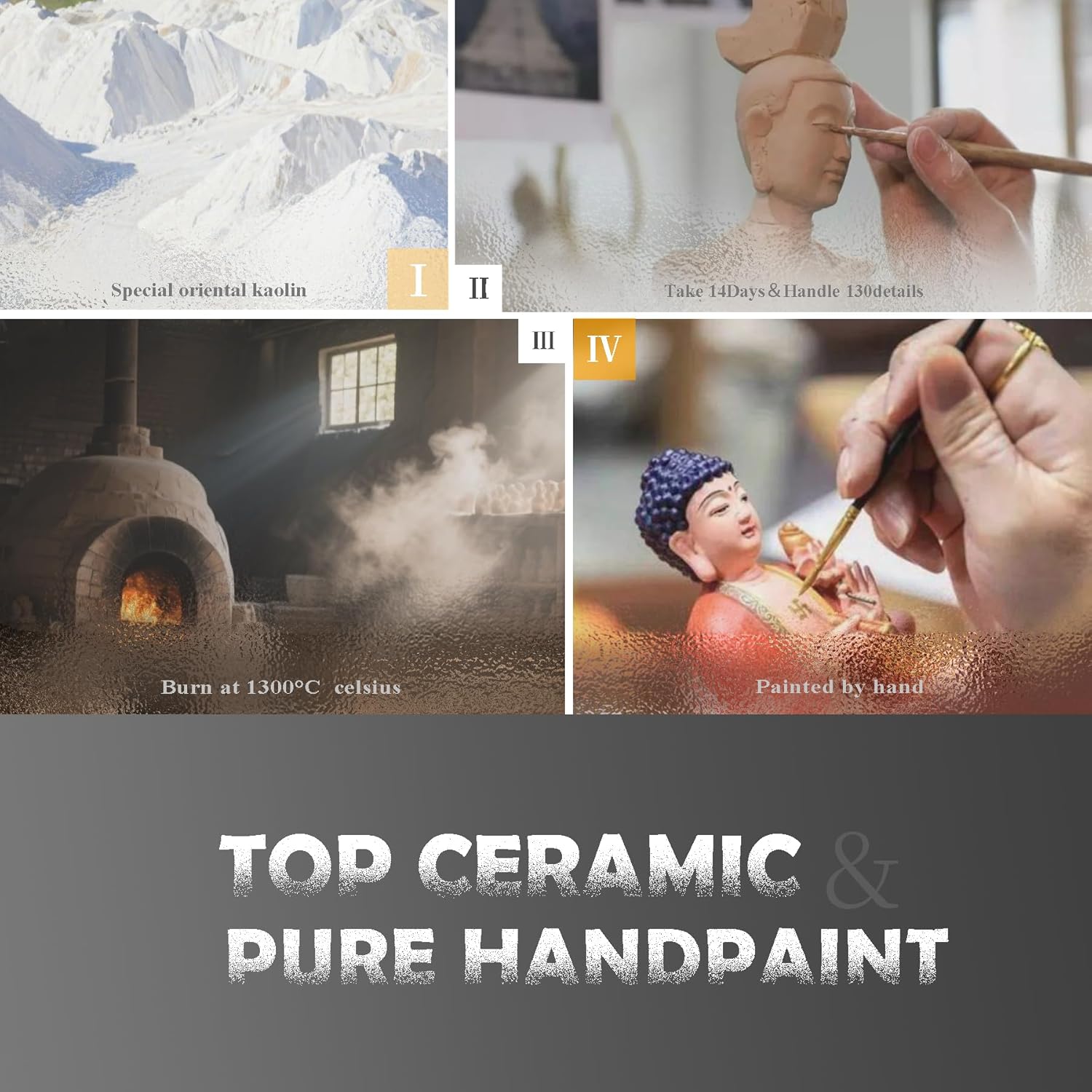 - 2.โ ๐๐จ๐ฉ ๐๐๐ซ๐๐ฆ๐ข๐ --- Handcrafted by top ceramic masters. Made of a special oriental soil. White as milk or snow. Color such as sheep fat, white jade, scallion white, without any impurities. ๐ง Geographical indication products, enjoyed the reputation of ceramic pearl. Perfect ceramic buddha statue indoor, buddha statue outdoor, buddha statues for home. ๐