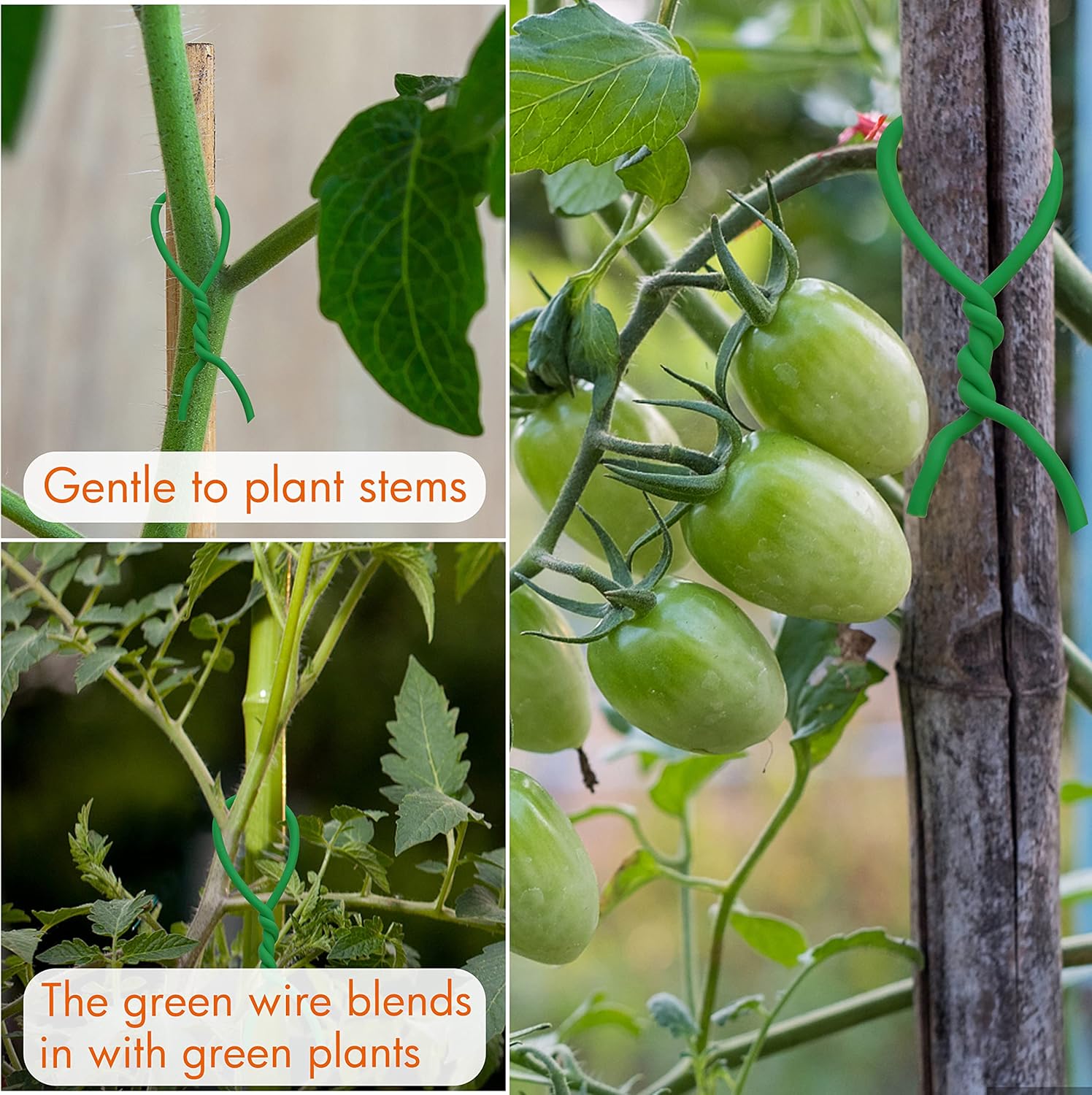 - Gentle on Plants - Prepare a scissor and cut any length piece needed. Easily twist with no snapping and the tie is gentle to plant stems. The green wire blends in with green plants nicely.