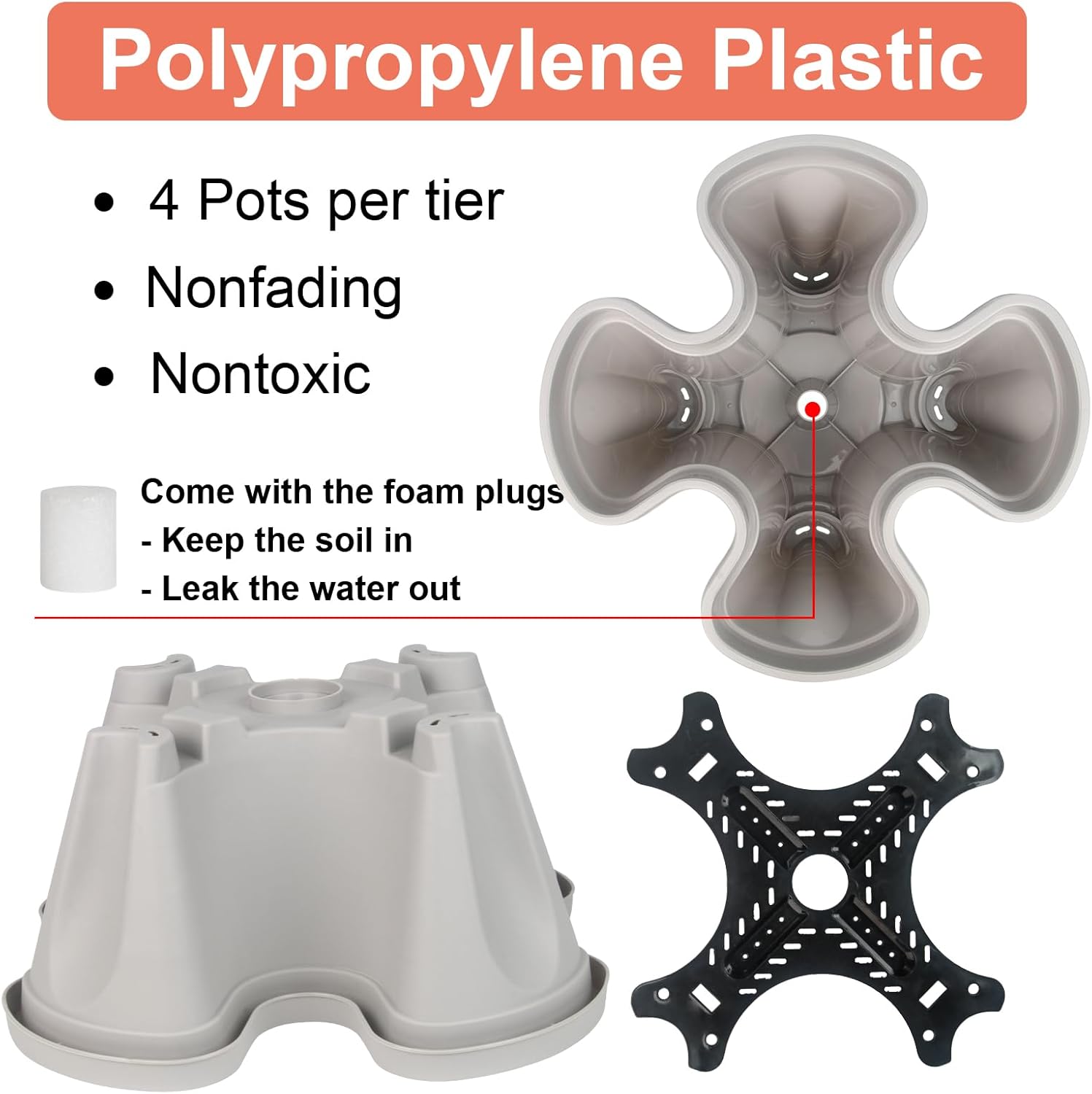 DUNCHATY Stackable Planter, Vertical Garden Planter with Wheels and Garden Tools, Strawberry Planter Indoor/Outdoor 5 Tier Herb Planter Pots for Growing Vegetables and Succulents,Gray
