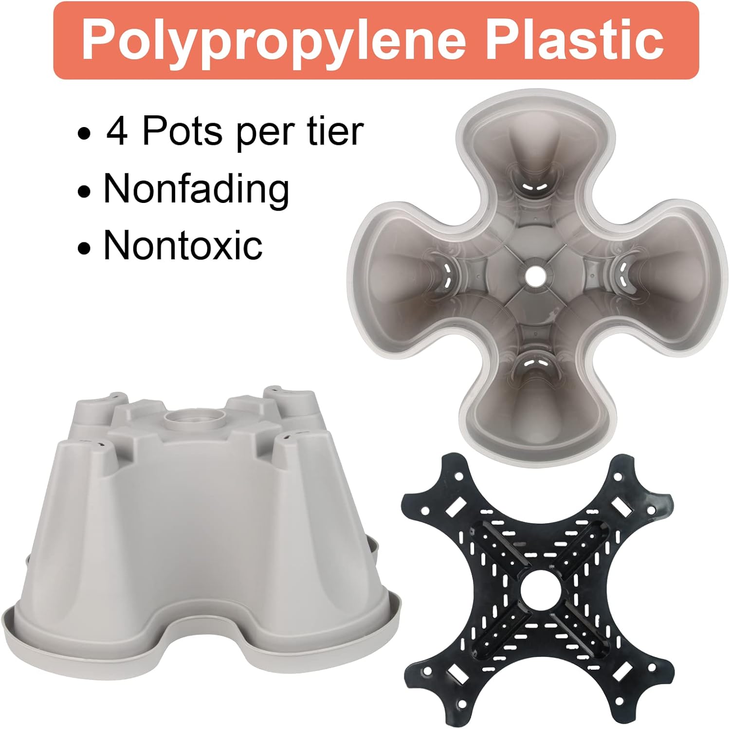 DUNCHATY Stackable Planter, Vertical Garden Planter with Wheels and Tools, Self Watering Strawberry Planter Indoor/Outdoor 3 Tier Herb Planter Pots for Growing Vegetables and Succulents,Gray