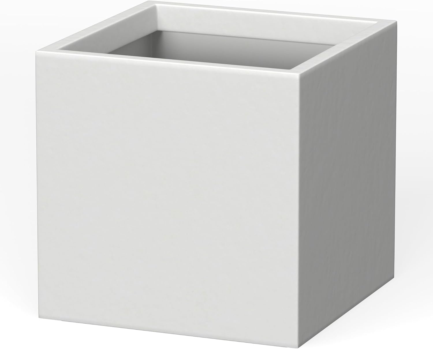 Kante 10 Inch Square Concrete Planter for Outdoor Indoor Home Patio Garden, Large Plant Pot with Drainage Hole and Rubber Plug, Pure White
