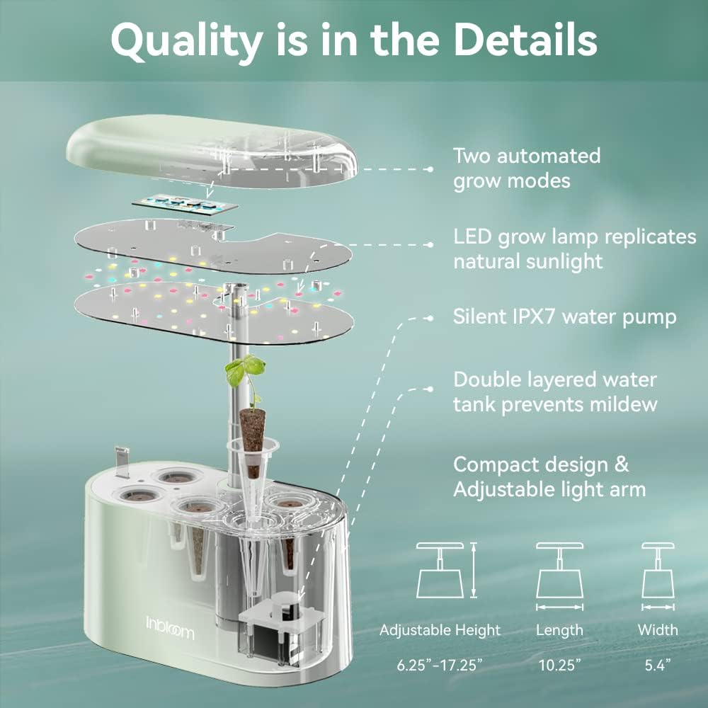 - 🌱【Inbloom Hydroponics Growing System】Our 5-hole hydroponics growing system brings convenience, space-saving, and health to city living. The inbloom hydroponics growing system is designed to provide a compact, indoor, and all-season gardening experience anywhere and at any time. This hydroponics growing system is made with sustainable materials, sourcing recycled.
