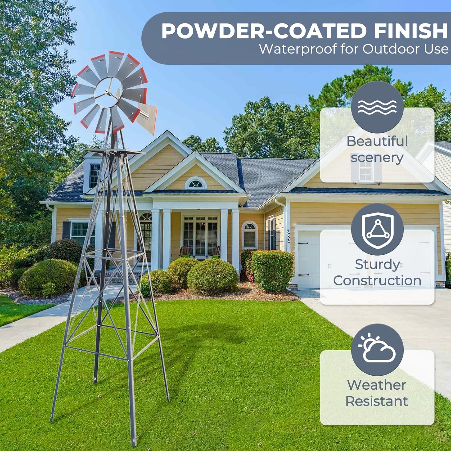 Outvita 8FT Ornamental Windmill, Heavy Duty Durable Metal Weather Vane Garden Decoration Weather Resistant for Garden, Yard, Farm, Seaside (8ft-Gray)