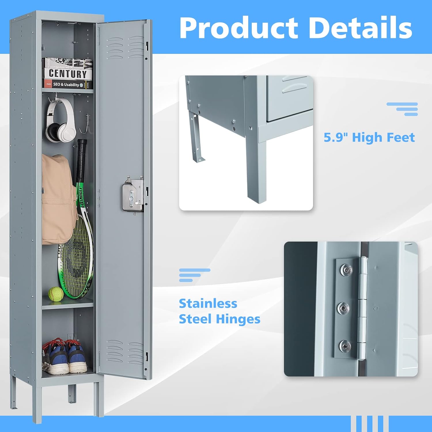 - Multiple Uses: Metal storage can easily blend with most of places, such as gym room, bedrooms, classroom, porch, dressing room. This metal locker has 5.9" high legs to prevent moisture