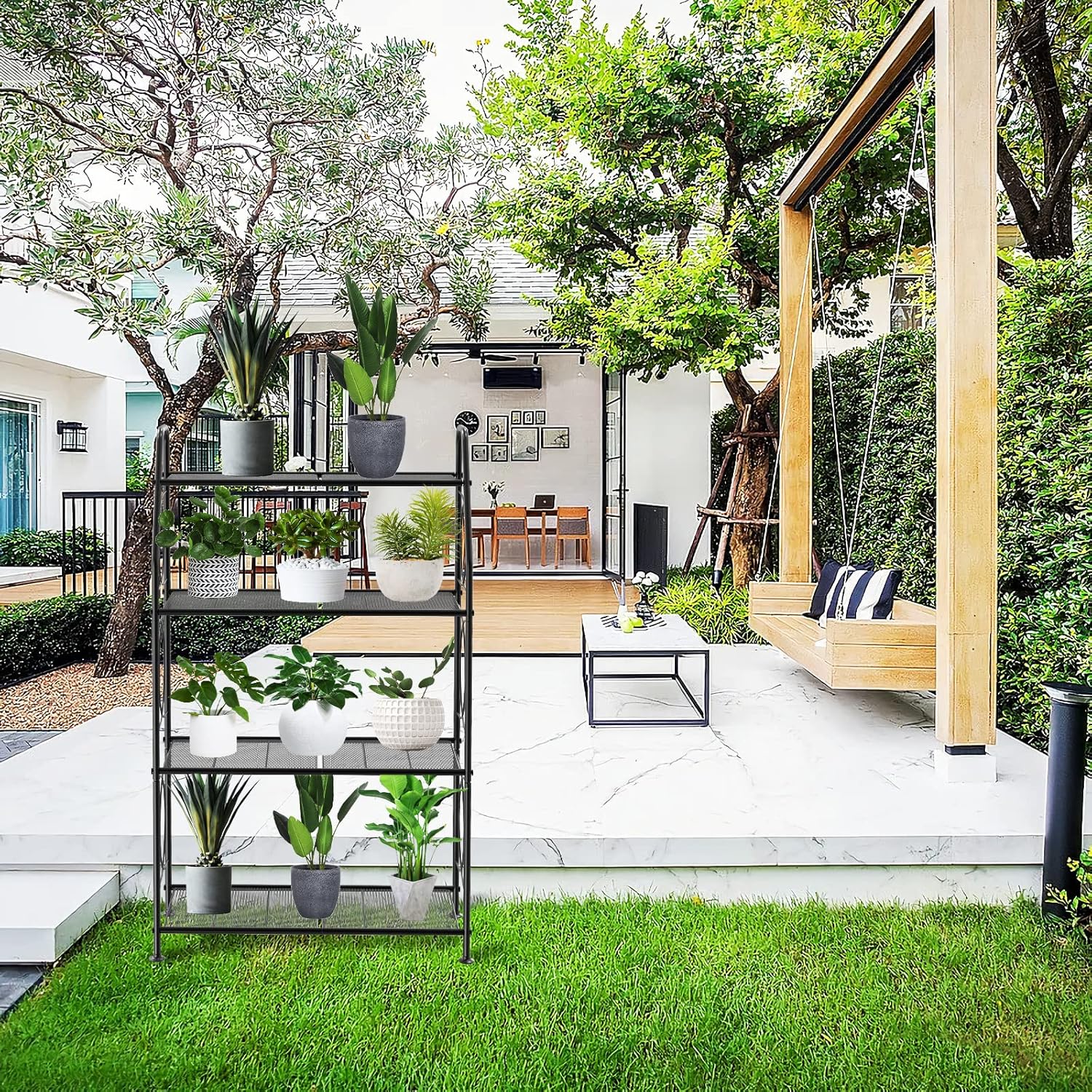Plant Stand, 4 Tier Plant Shelf for Indoor Outdoor, Heavy Duty Metal Tall Plant Stands Holder Rack for Living Room Balcony and Garden, Black