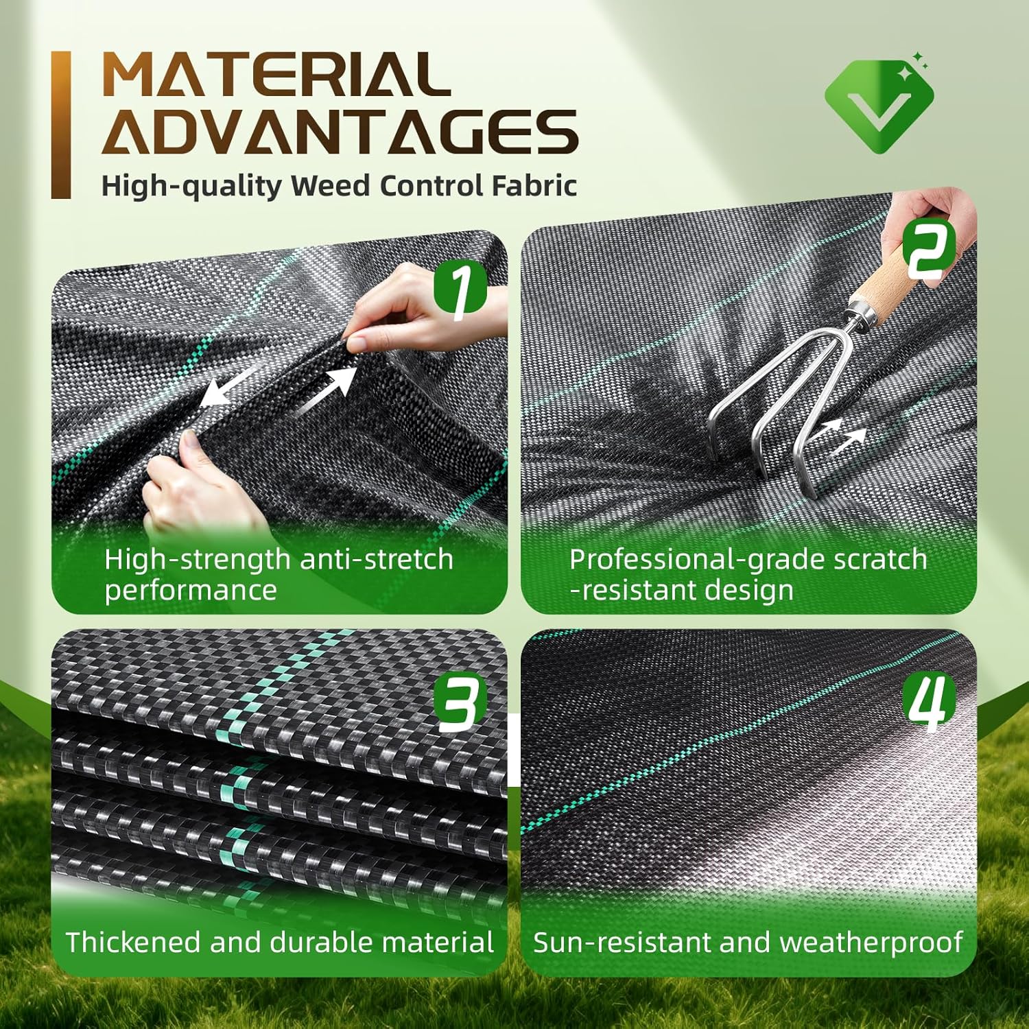 - Garden Expert: Professional Garden weed barrier landscape fabrics to keep you away from the troubles of weeds. Our weed fabic are highly permeable and breathable, ensuring worry-free irrigation. Landscape weed barriers help your plants grow faster. Make your garden life easier and more comfortable.