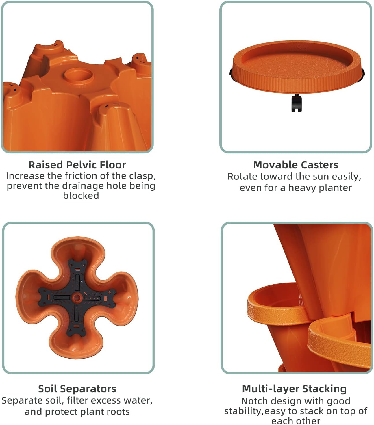 - Flow Design - The water filtration system from top to bottom can save water and retain moisture but prevents overwatering or root rot. 3 filters are placed on each level to keep the soil from going through the big drainage holes, it also helps retain water in each planter level.
