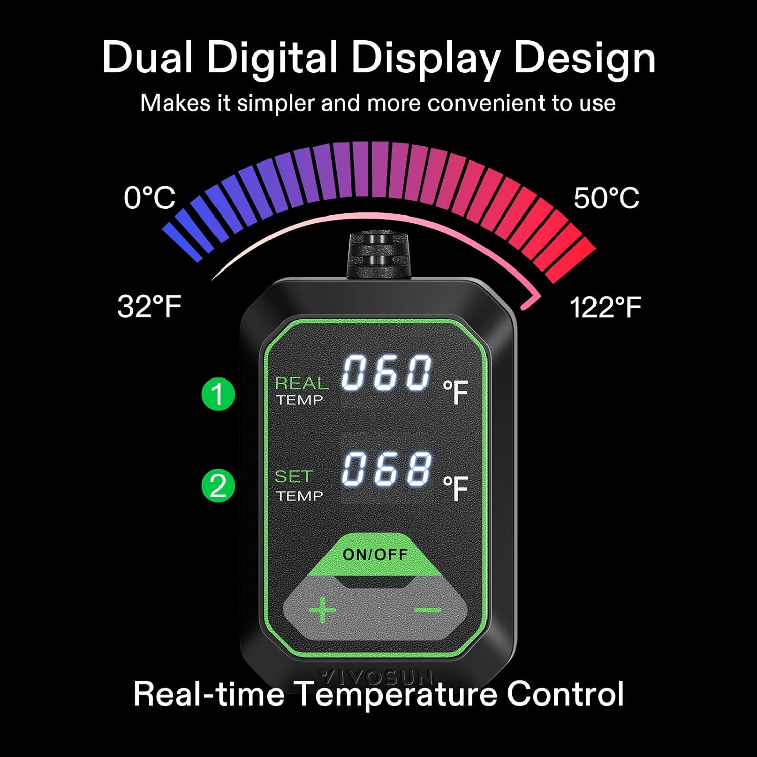 - Heat Mat Feature 2: This thermostat comes with a adjustment function allows users to set the desired temperature according to the needs of their plantsโit's simple and convenient to use; It also receives data from the internal sensor chip and displays the temperature of the heating pad in real-time