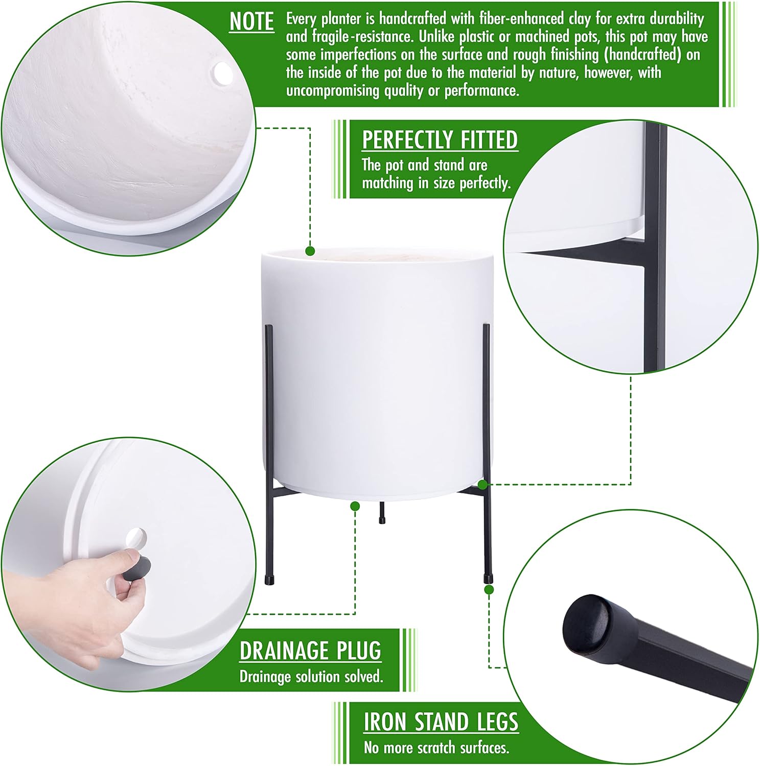 D'vine Dev Modern White Plants Pot Cylinder Planter with Heavy Duty Stand, XX-Large 16 Inch Pot, 22.8 Inch with Stand Height, 96-T-A-5