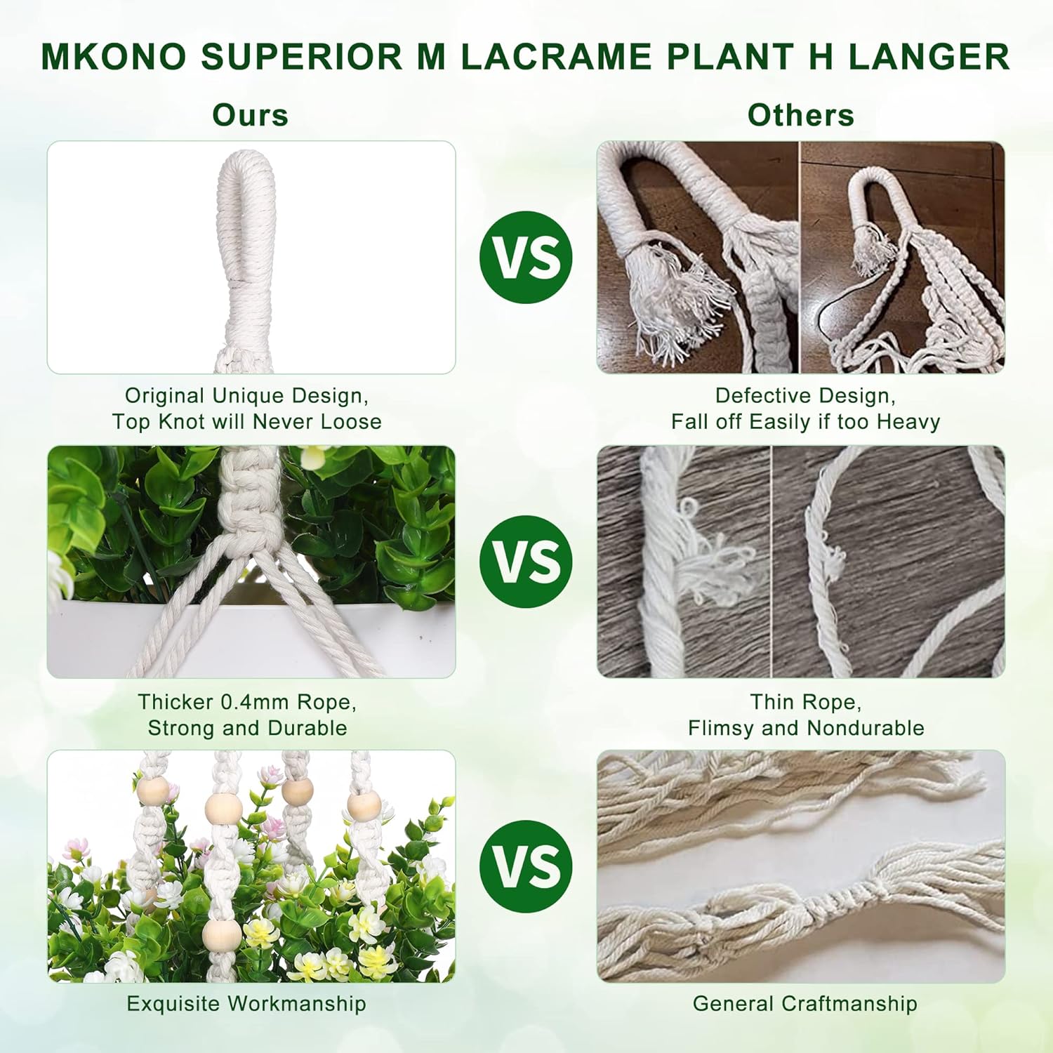 - 【NICE GIFT】Hanging plant holder Ideal to decorate pathways and indoor. It will be a great and practical gift for plant lover.They’ll love the freedom to display their plants wherever they want. Treat yourself this macrame plant hanger if you are looking to bring some natural greenery to create nice home. It’s great for housewarming, birthday, wedding, christmas, and more!
