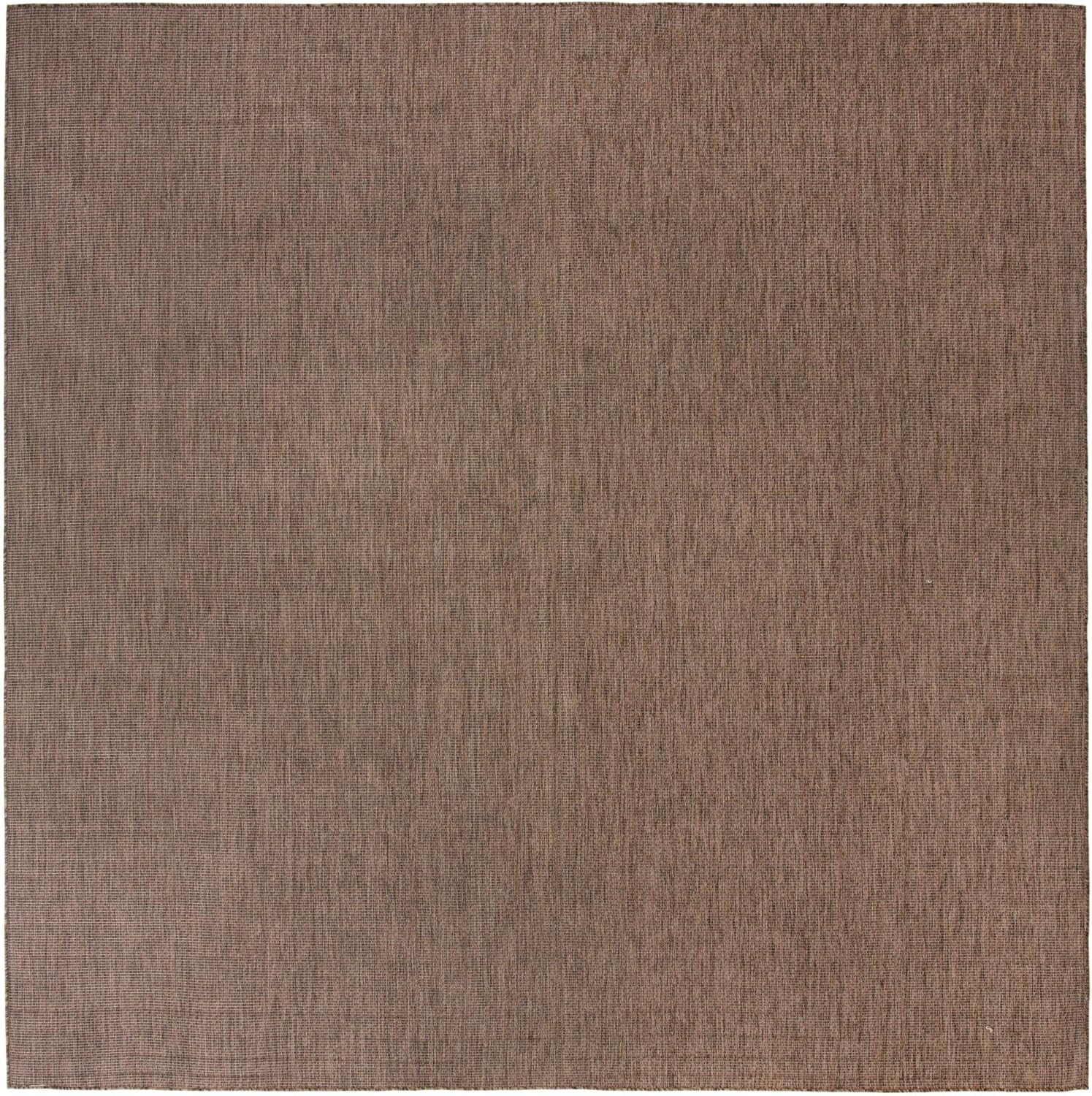 Unique Loom Collection Casual Transitional Solid Heathered Indoor/Outdoor Flatweave Area Rug (13' Square, Light Brown/Ivory)