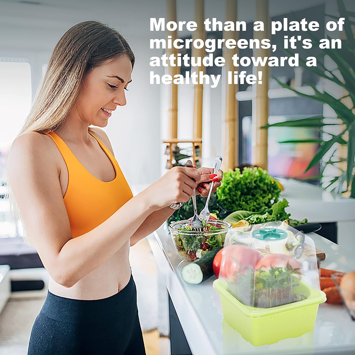 - 【Easy to Clean】Made from food-grade PP material, our mircogreen tray is BPA-free, safe, non-toxic, and odorless, ensuring long-lasting durability. The bottom tray is dishwasher safe for easy cleaning (Note: Please do not place the humidity domes in the dishwasher