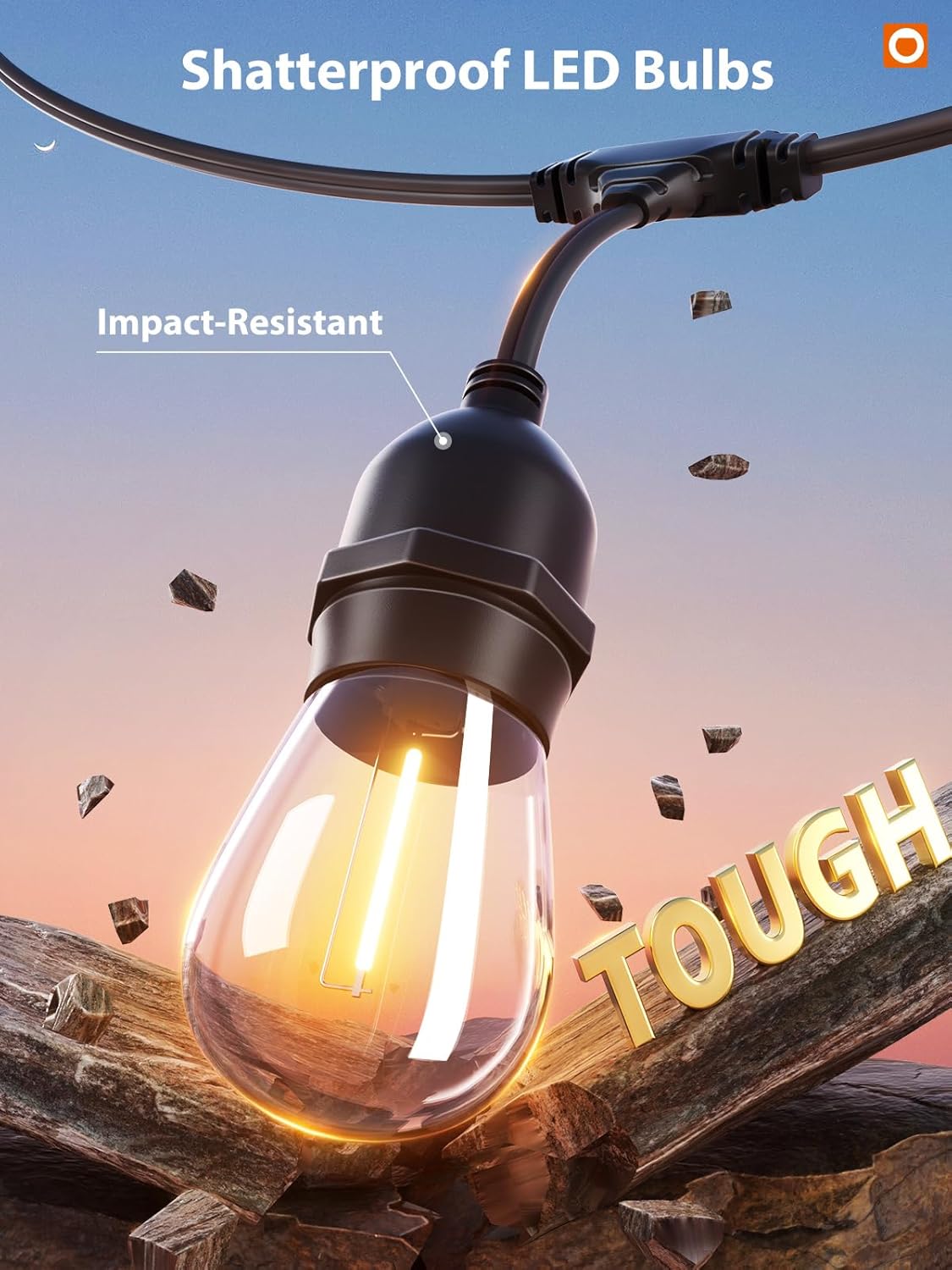 - Shatterproof LED Lights: 2 pack of 48ft long LED string lights with 30 sockets and 32 plastic bulbs for outdoor use