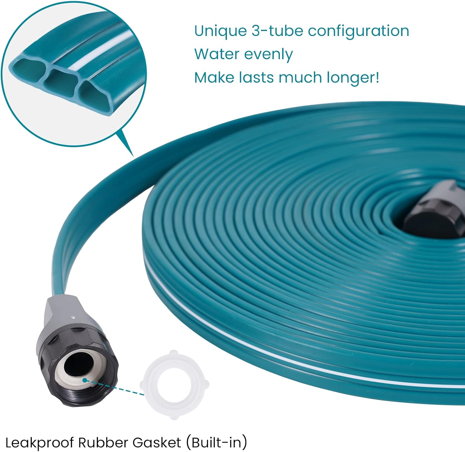 LINEX Sprinkler Soaker Hose 50 ft 2 pack for Garden Lawn Watering Hose with Hose Stakes