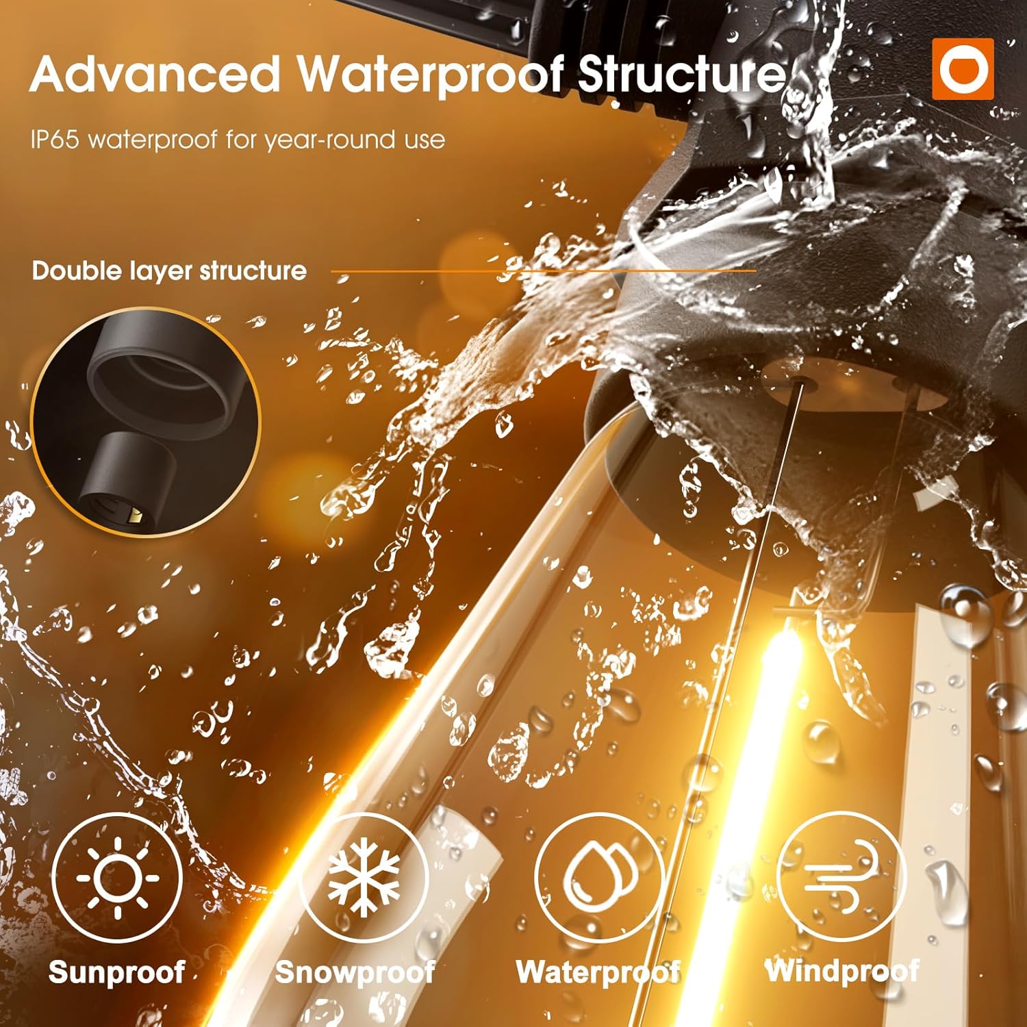 - Waterproof & ETL Certified: With a high waterproof rating of IP65, these weatherproof patio lights can withstand rain, sun, wind, snow, humidity, and extreme outdoor temperatures.