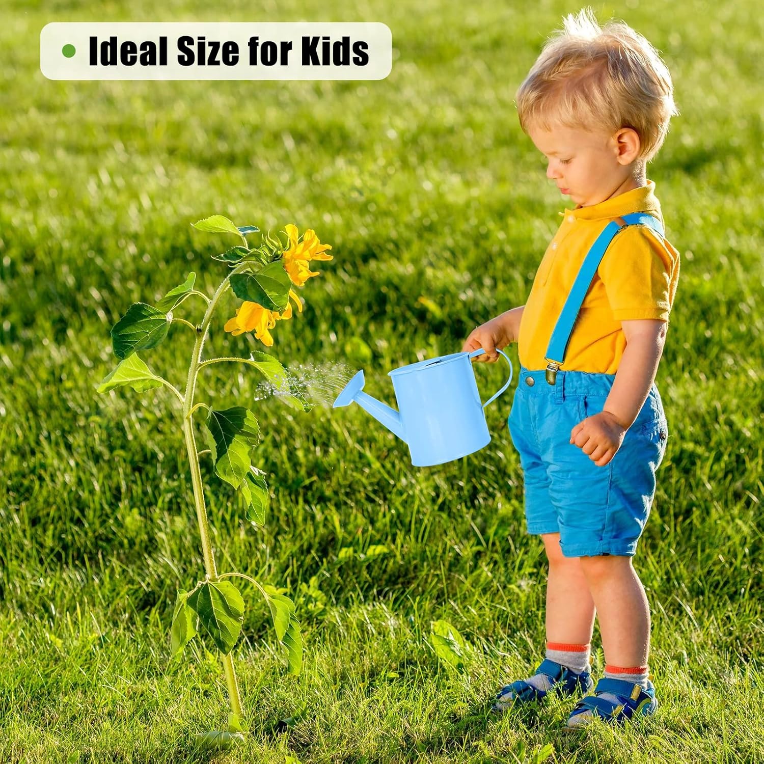 Metal Watering Can (1 Gallon) for Outdoor&Indoor Plants with Free Small Watering can for Kids, Plant Watering Can with Removable spout, Perfect for Garden Flower, Houseplants, (Light Blue)