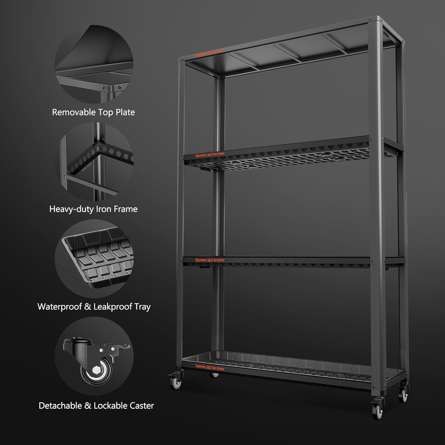 - ๐๐๐ฌ๐ฒ ๐ญ๐จ ๐๐ฌ๐ฌ๐๐ฆ๐๐ฅ๐ & ๐๐จ๐ฏ๐: Designed for quick setup, the Spider Farmer plant stand can be assembled in 20 minutes using the included Allen wrench and stainless steel screws. It features four lockable caster wheels made from durable polyurethane, offering smooth mobility, shock absorption, and floor protection. Move the stand effortlessly to adjust for seasonal changes or lighting conditions, then lock the wheels in place for stability.
