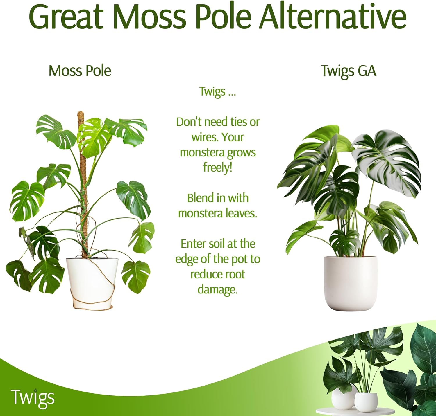 - AESTHETIC ALTERNATIVE TO MOSS POLES: Twigs GA Stackable Monstera Plant Support offers a stylish substitute to traditional moss poles. Perfect for Monstera Deliciosa and similar plants, this support provides structure while enhancing the beauty of your indoor garden.