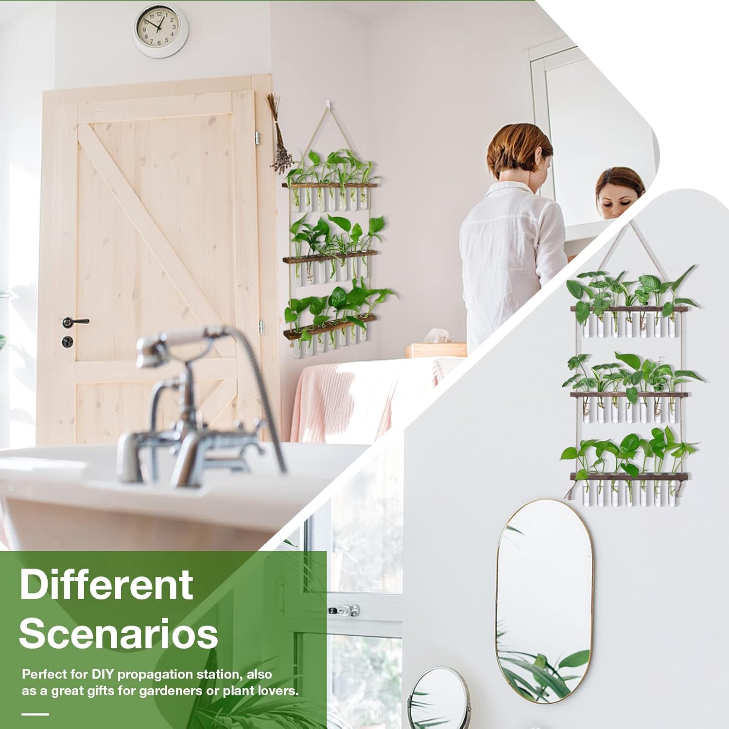 - Unique Decoration: Simple and elegant 3 tiered wooden stand with plant propagation tubes design is to hold more plants in less place and gives the nice touch to your house. It can be hang on window sill, art wall for decoration in dormitory or bedroom.
