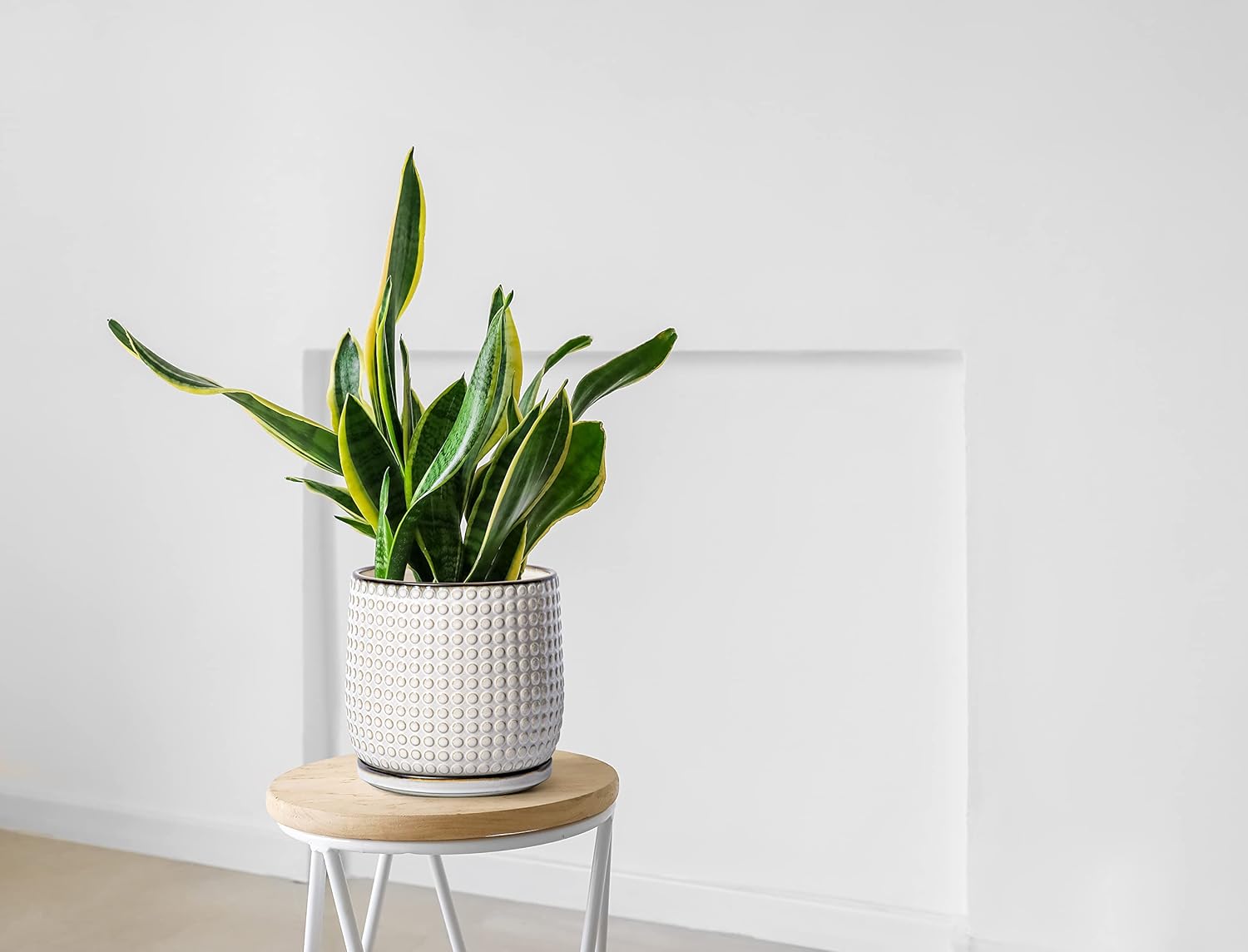 D'vine Dev 8 Inch Ceramic Beaded Stoneware Planter Pot - Flower Pot with Drainage Holes and Saucers for Indoor Succulent Plants or Flowers, Smoked White, 27-C-Q-1