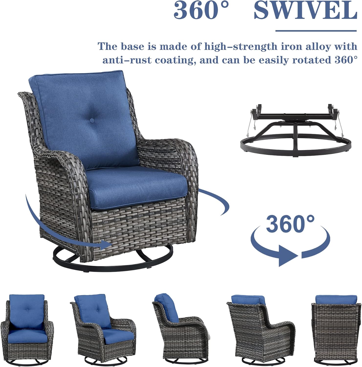 5 Piece Outdoor Patio Furniture Set - Wicker Furniture Patio Conversation Set, Outdoor Swivel Rocker Chairs with 3-Seater Sofa and 2 Ottomans for Small Space, Blue Cushion