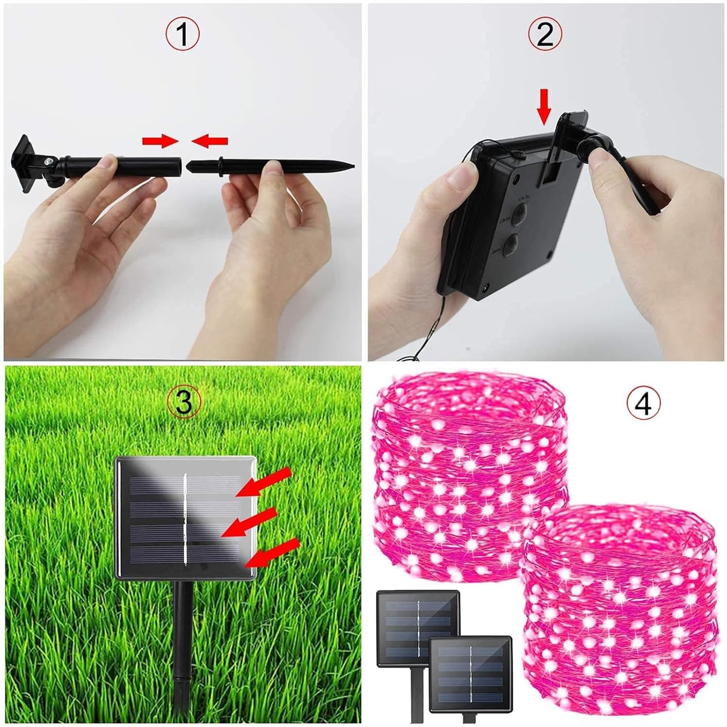 - [Solar Powered & Auto On/Off]: This string lights for outside is solar powered and waterproof, no electricity cost. Larger Christmas solar panel with quick charging technology, bring you higher solar energy conversion, it can work up to 10-12 hours after being fully charged (8 hours). Just place the battery panel in sunny area, it will automatically charge at daytime and light up at night.