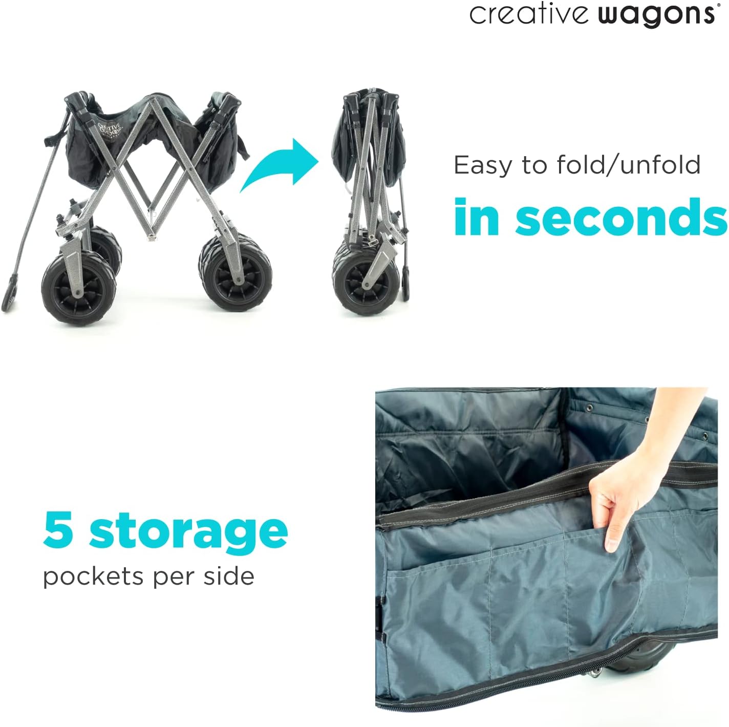 Creative Outdoor Push Pull Stroller Wagon, Beach Hauler XXL with Canopy, Collapsible and Portable Heavy Duty Folding Cart, Supports up to 200lbs Weight Capacity, Giant 10" Wheels