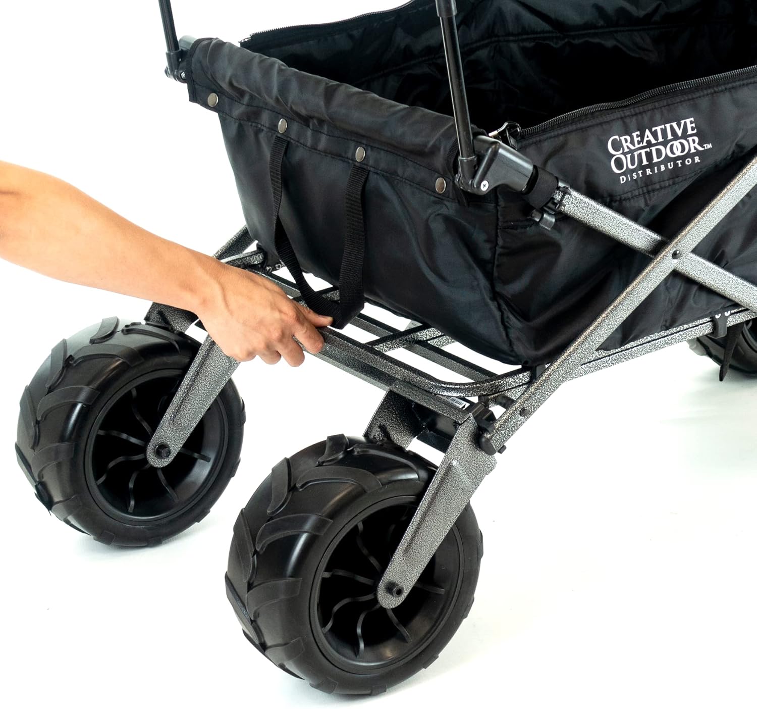 Creative Outdoor Push Pull Stroller Wagon, Beach Hauler XXL Deluxe with Canopy, Collapsible and Portable Heavy Duty Folding Cart, Supports up to 200lbs Weight Capacity, Giant 10" Wheels