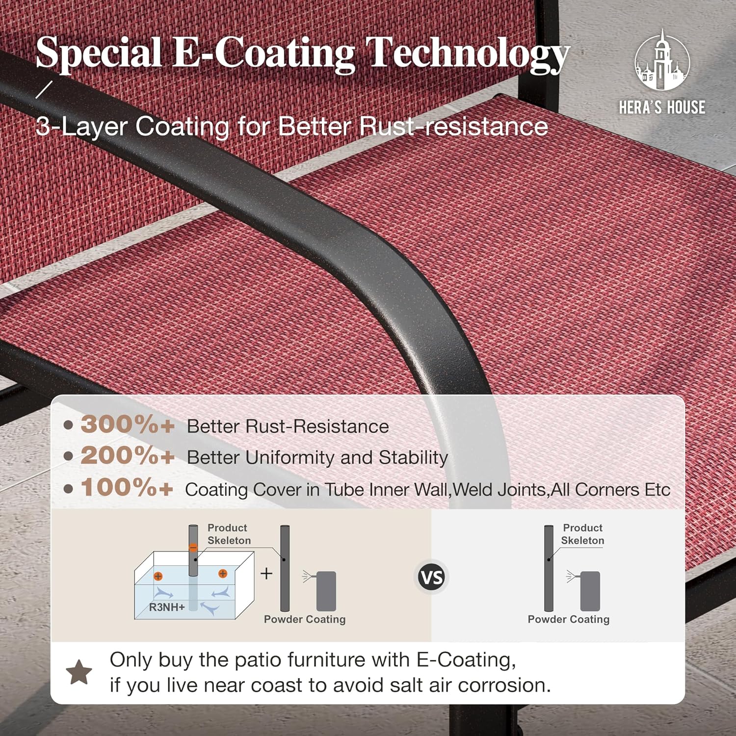 HERA'S HOUSE Red Patio Dining Set for 4, 5 Piece Outdoor Table and Chairs Set, 4 x Textilene Dining Chair, 37" Square Metal Dining Table, for Lawn Garden Backyard Deck