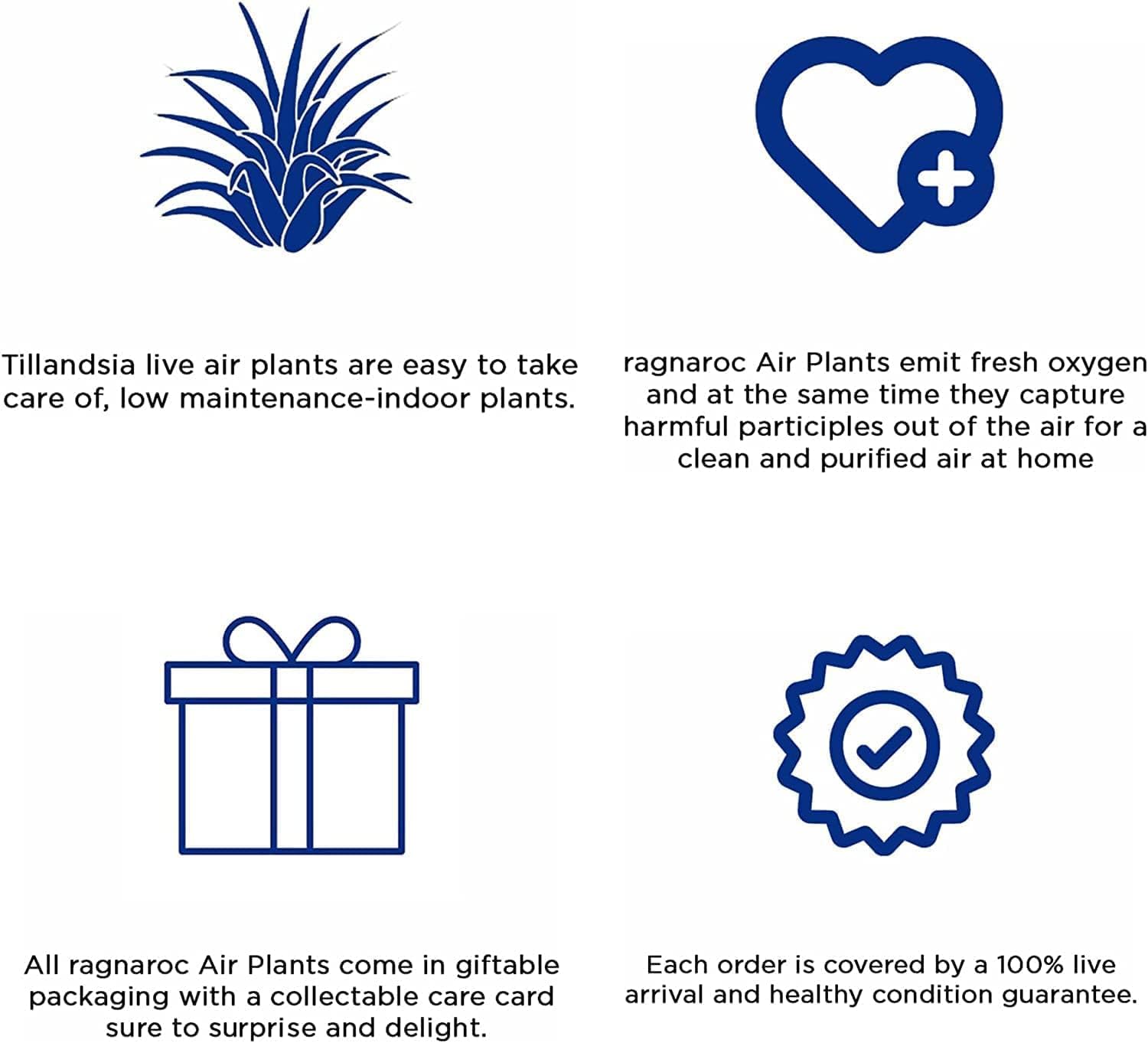 - EASY-CARE PLANTS INDOORS LIVE: Thrives in bright, indirect light. Mist the air plants 2-3 times per week or soak them in water for 20-30 minutes weekly. No soil required, making this variety pack of live house plants perfect for beginners and seasoned plant enthusiasts alike.