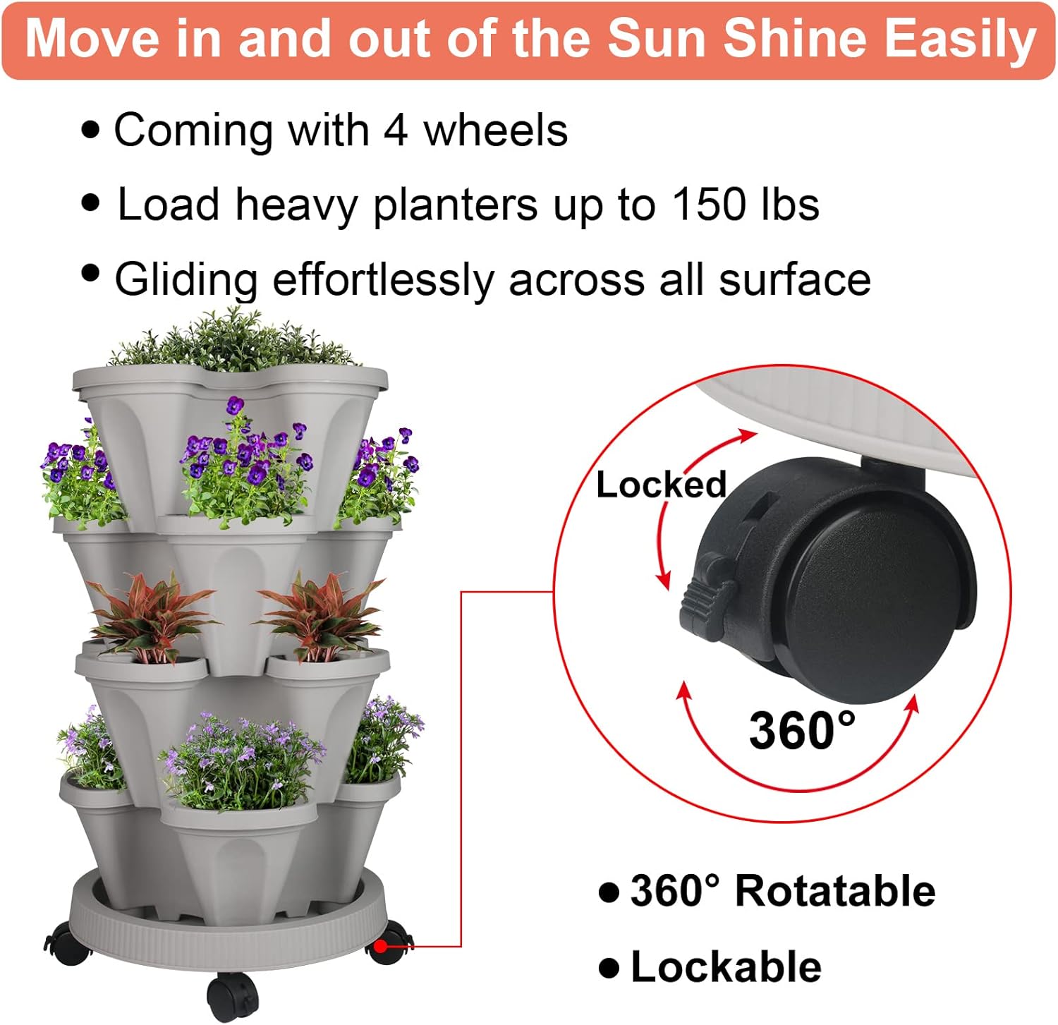 Vertical Planter 4 Tier Stackable Planters Garden Planters Strawberry Herb Flower and Vegetable Planter Indoor Outdoor Gardening Pots with Removable Wheels and Tools 2-Pack