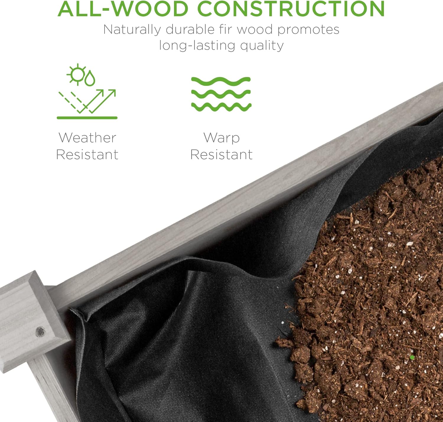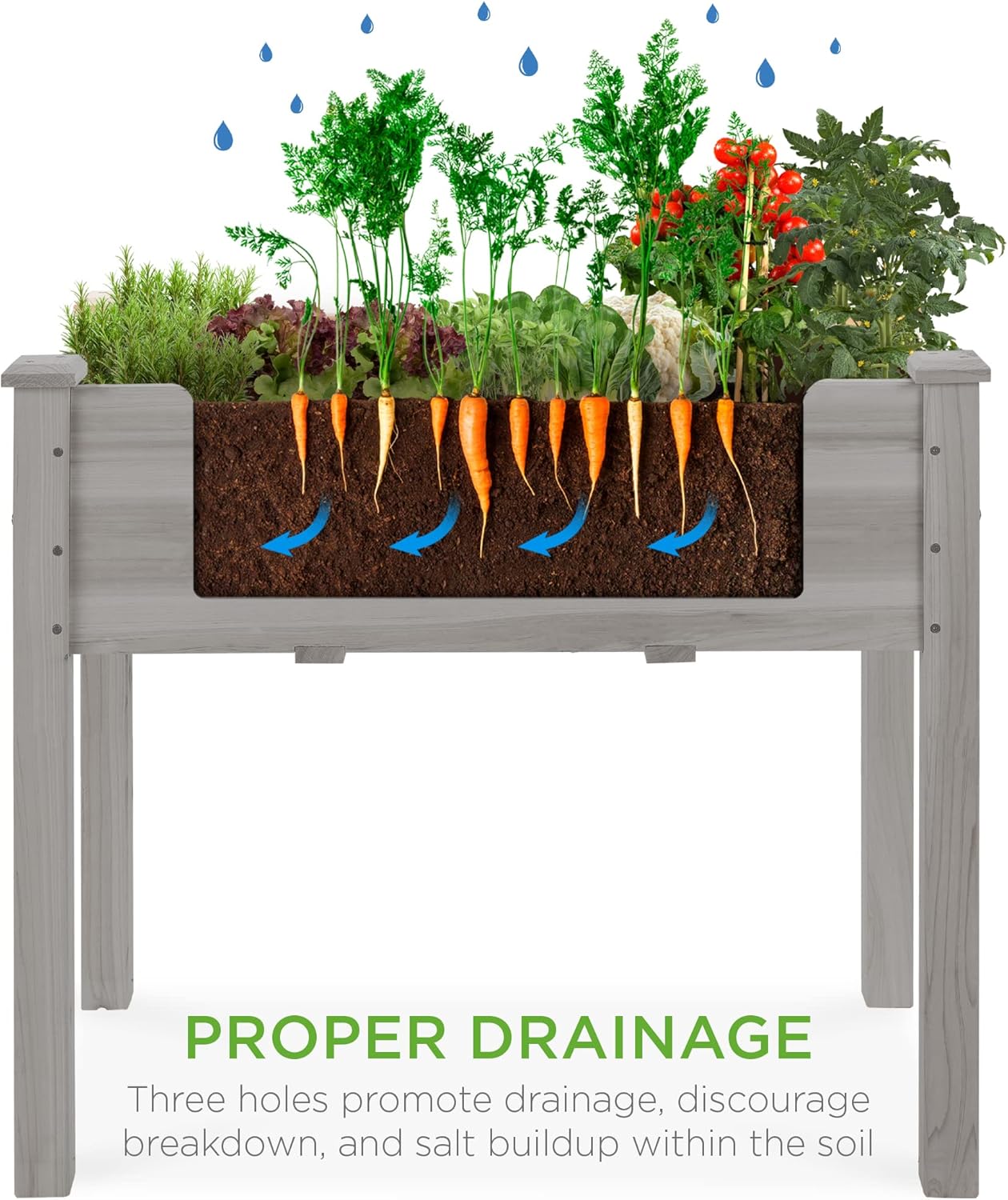 Best Choice Products 34x18x30in Raised Garden Bed, Elevated Wood Planter Box Stand for Kids, Backyard, Patio, Balcony w/Bed Liner, 150lb Capacity - Gray