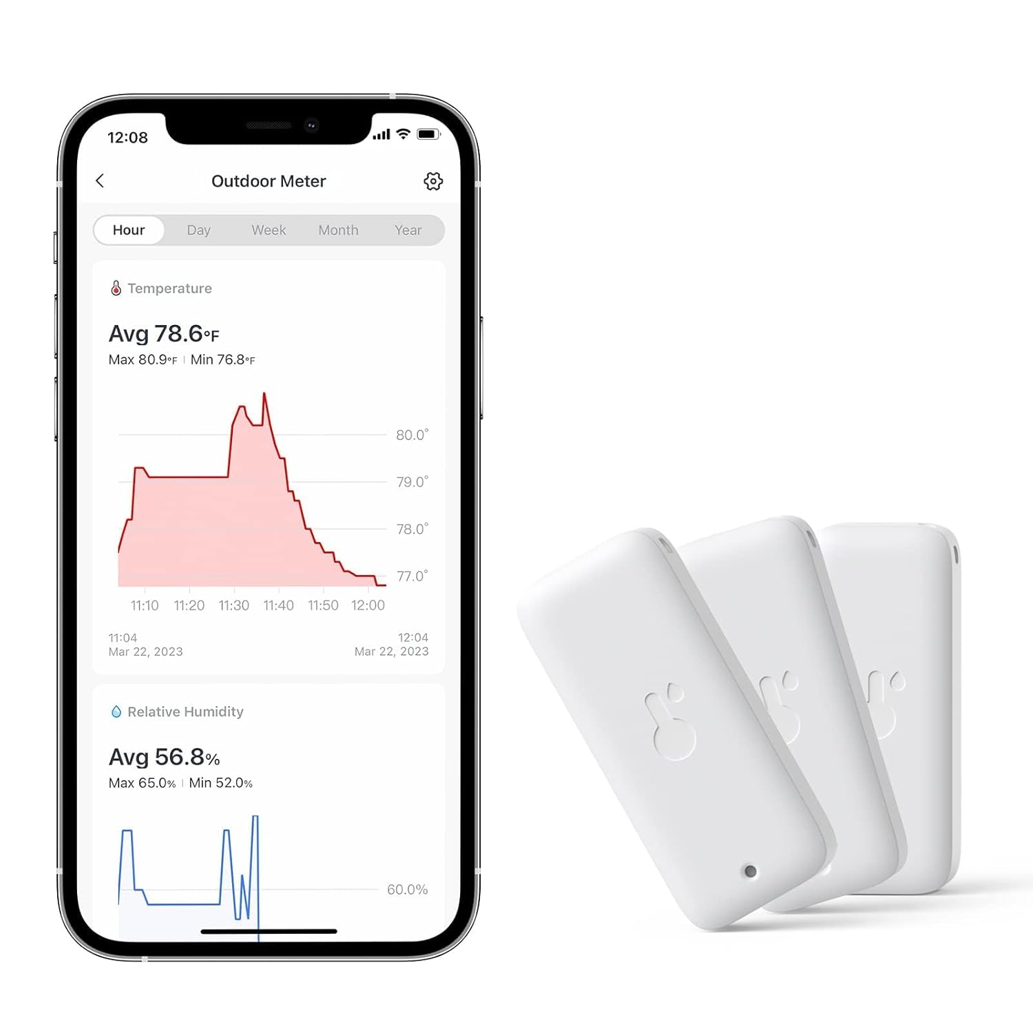 SwitchBot IP65 Indoor Outdoor Hygrometer Thermometer Wireless 3Packs, 394ft Bluetooth Range, Refrigerator Thermometer, Dewpoint/VPD/Absolute Humidity Sensor, 2-Year Battery Life, Free Data Storage
