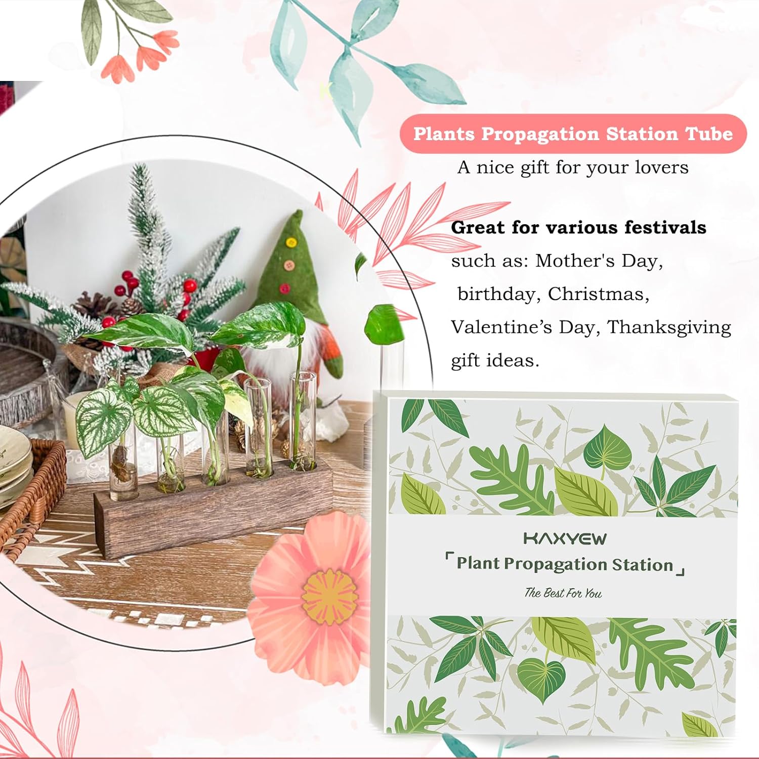- โฅPlant Propagation Gift + Gift Box: Beautifully packaged plant propagation station makes an ideal gift for any occasion, including birthdays, Motherโs Day, Christmas, Valentineโs Day, and Thanksgiving. Perfect for nature-loving gardeners, itโs a thoughtful present for wedding parties, anniversaries, housewarmings, and other special occasions. Delight your loved ones with a gift that combines style and functionality!
