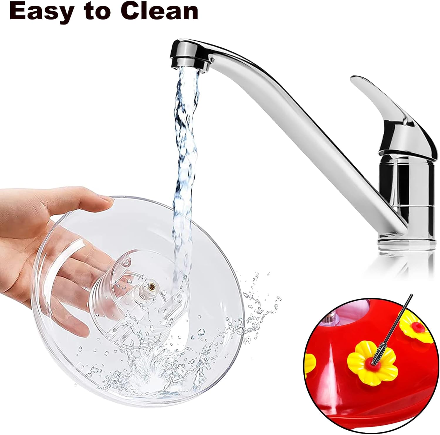 - ππ¨π π ππ‘ππππ₯π ππππππ₯ πππ§ -- Specially designed hummingbird feeder, holds up to 16 fluid ounces of nectar. Saucer shaped with 5 feeding ports to satisfy multiple hungry hummingbirds at once. Each set includes 1 plastic hummingbird feeder, 1 metal hanging rod and 2 cleaning brushes.