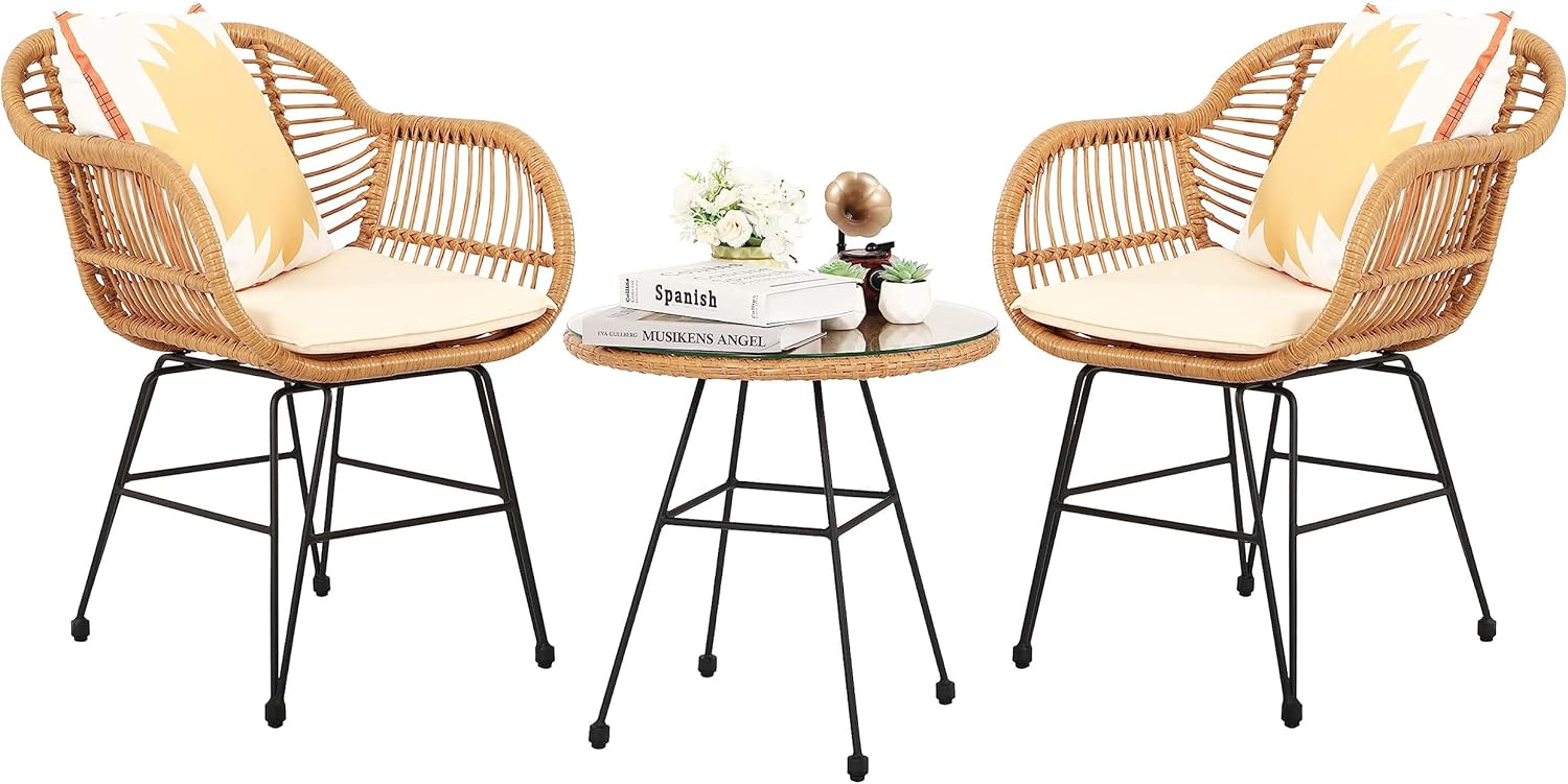 - VERSATILE LAYOUTS : This outdoor bistro set is equipped with non-slip feet pads to protect your floor and make the patio furniture stability, wicker & extra-widen seat , the backyard furniture can hold up 250lbs weights.