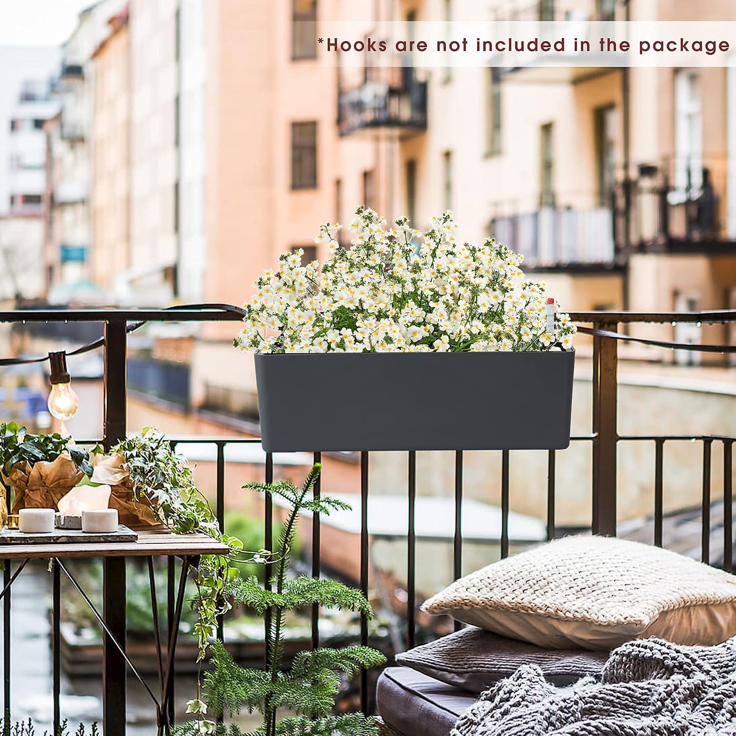 GardenBasix Elongated Self Watering Planter Pots 2-Pack Window Box 5.5 x 16 inch Indoor Home Garden Modern Decorative Pot for All House Plants Flowers Herbs (Dark Grey,2)