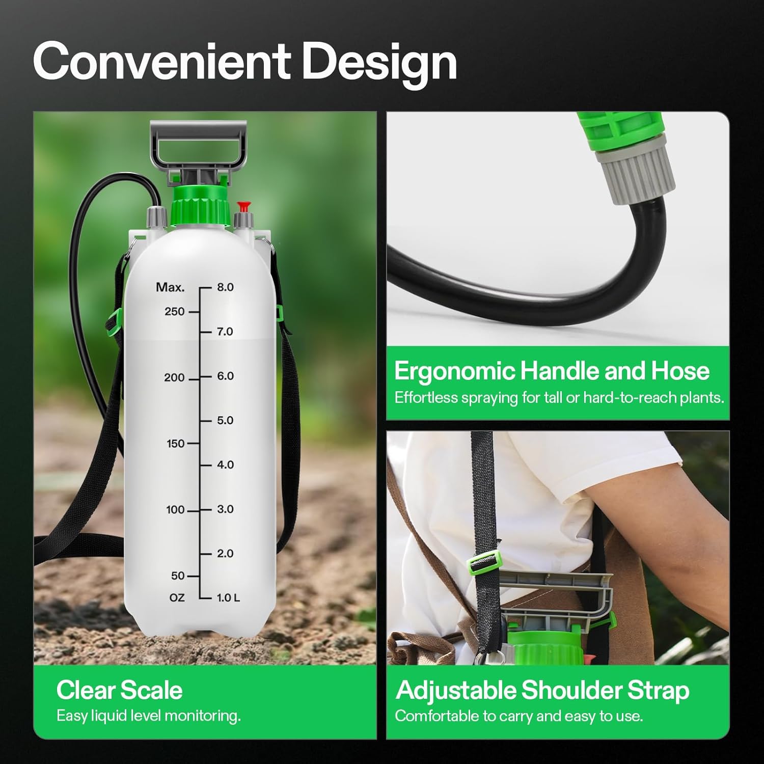 VIVOSUN 2.1 Gal/8L Pump Sprayer, Garden Water Sprayer for Plants, Weeds & Lawn Care, with 3 Nozzles, 50'' Long Hose & Pressure Relief Valve