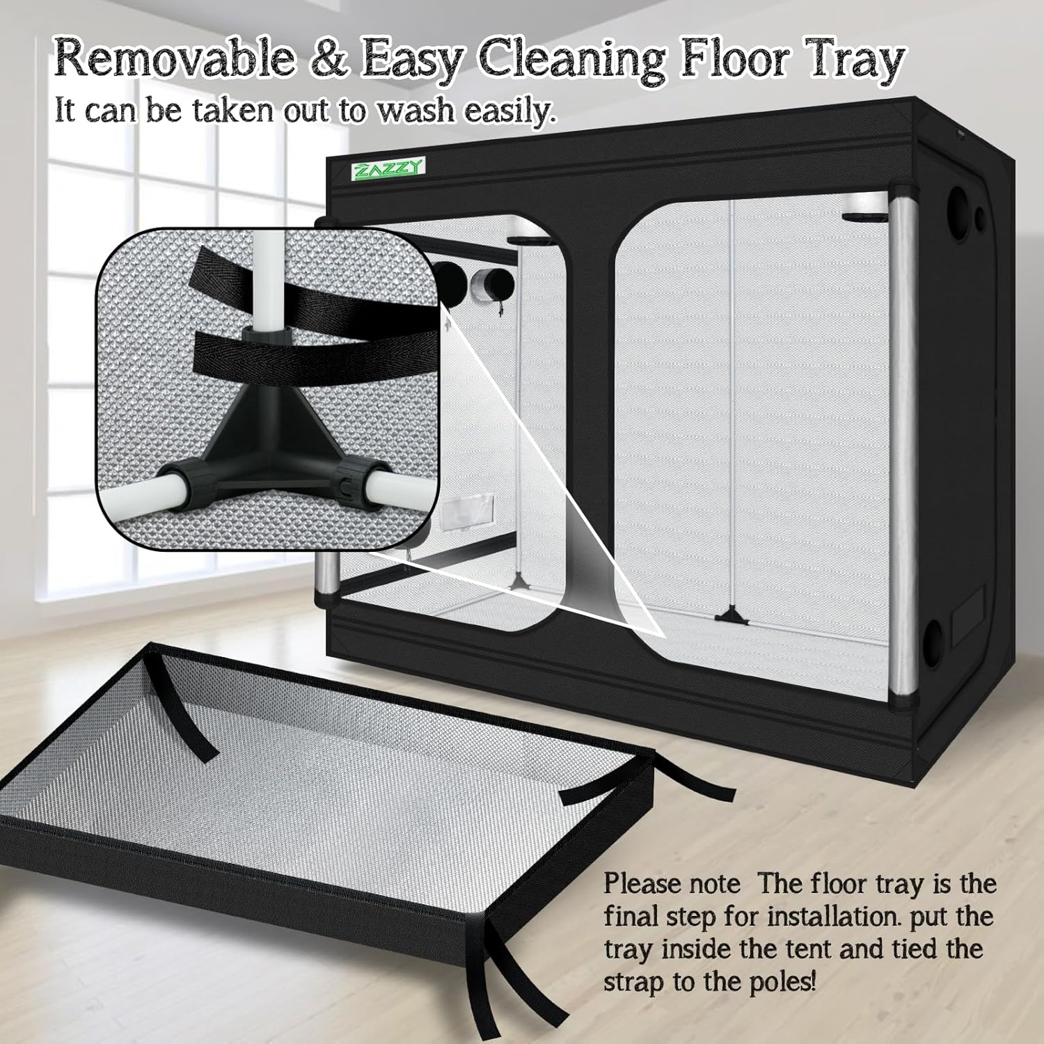 zazzy Grow Tent, 120"x60"x78" Hydroponic Mylar Grow Tent Reflective Garden Growing Dark Room with Observation Window, Removable Floor Tray and Tool Bag for Indoor Plant Growing 10x5