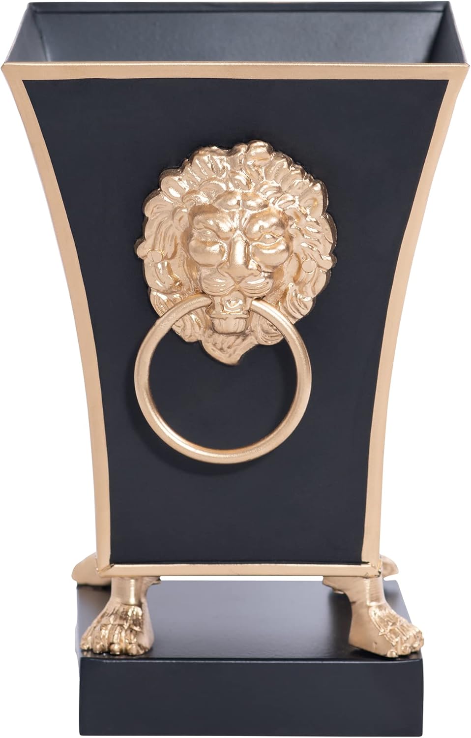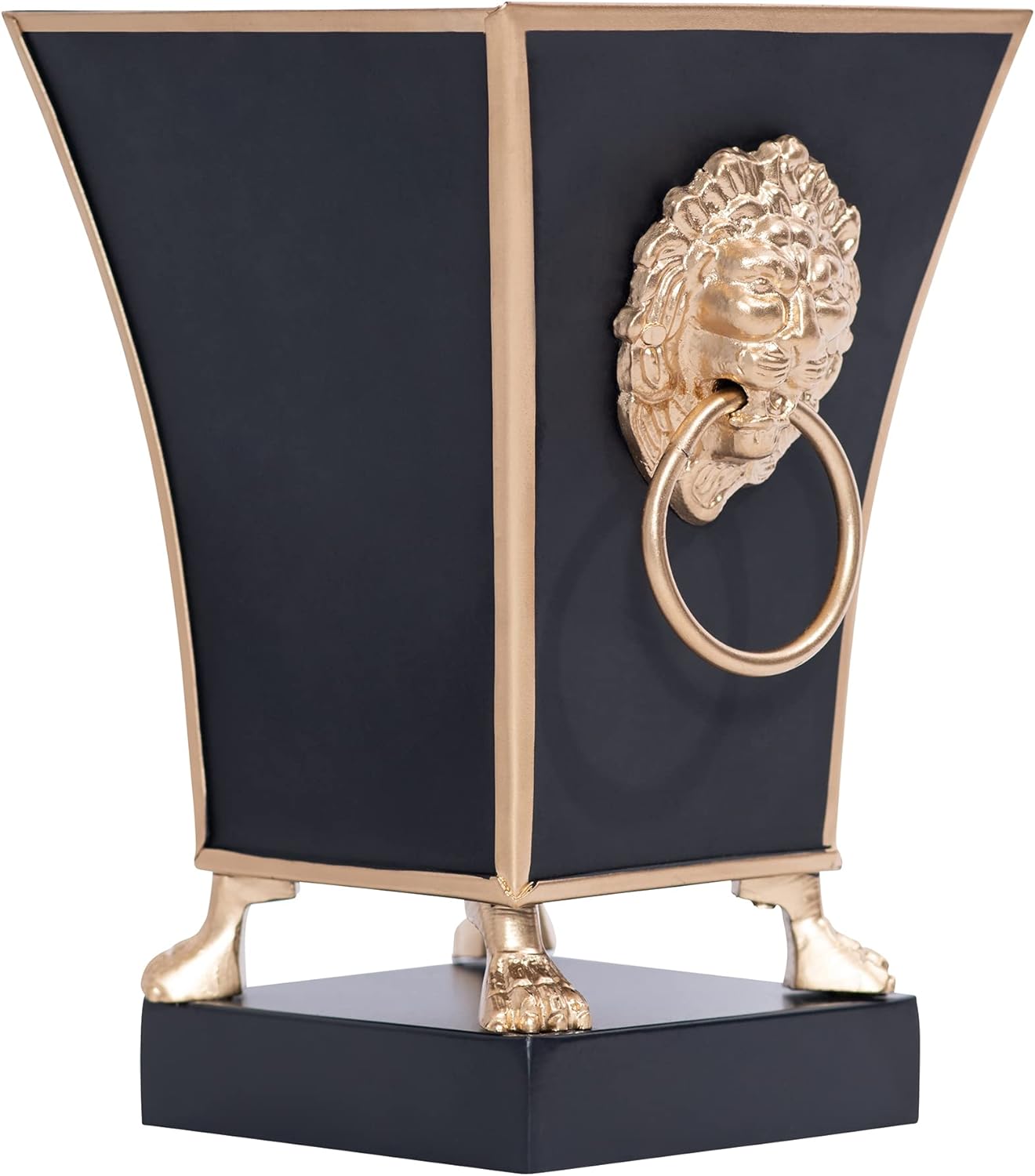 Jaye's Studio Regency Line, Paws & Claws, Decorative Square Cachepot & Planter, Gold Trim & Finish, Hand-Painted, Handcrafted Metal, Luxury Indoor Planter, Size 5x5x9, (Black)