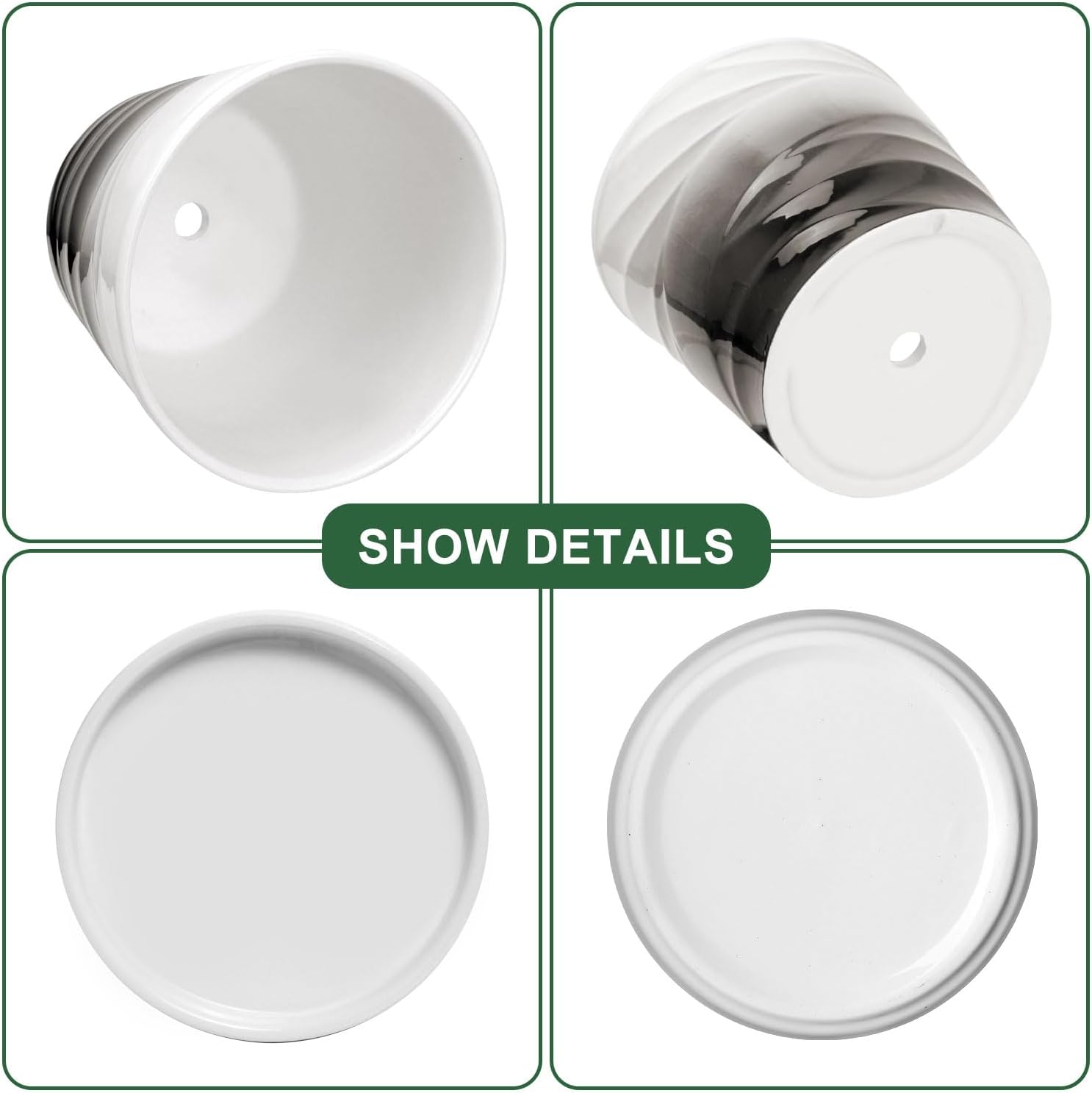 - 【Ceramic pots for plants】The flower pot is made of high temperature fired ceramic, which makes the black and white indoor plant pots strong, not easy to crack, but also has a uniform smooth glaze.