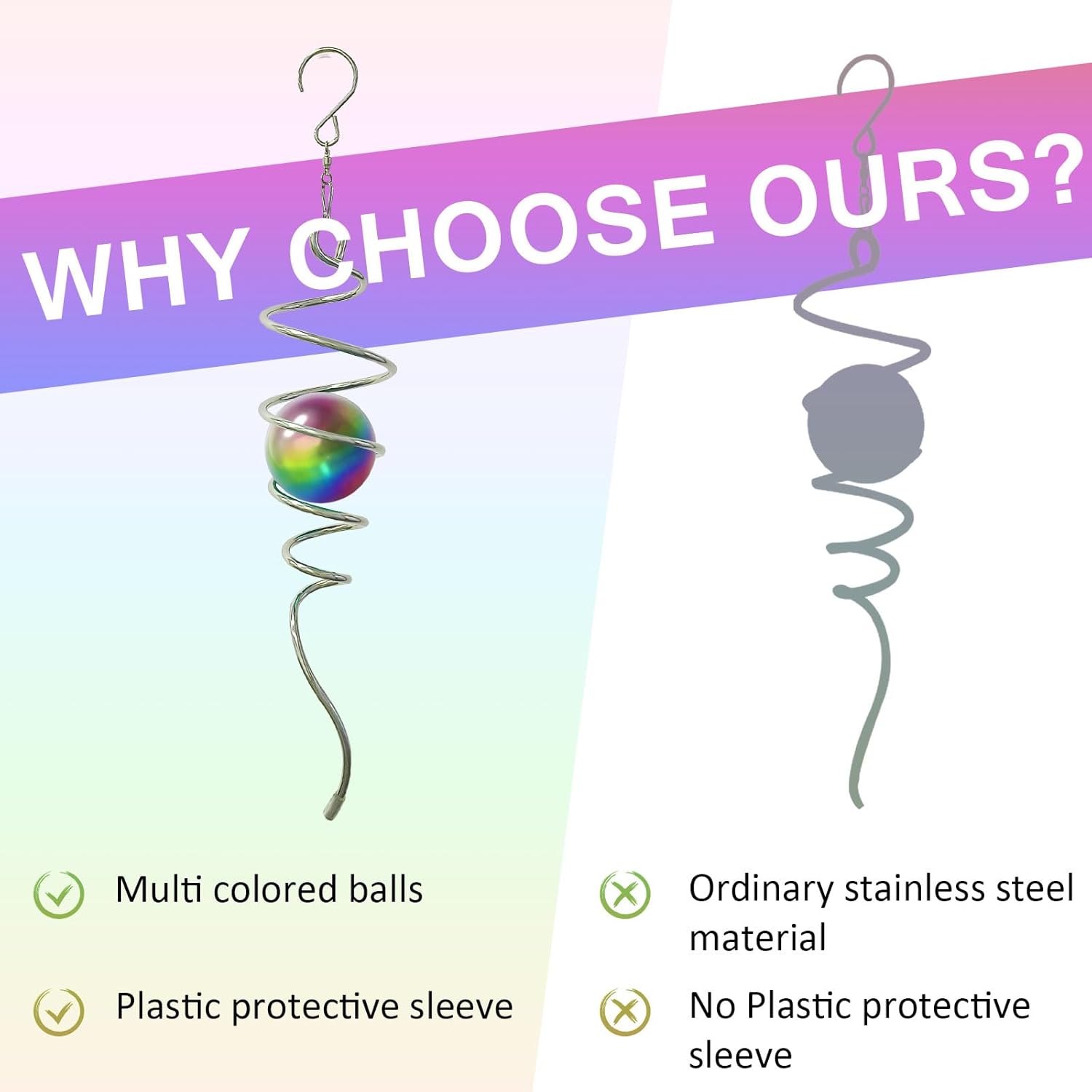 - ✔【Easy to use】The spiral tail wind spinner can't spin by itself ,if you want to make it spin like the video ,need add 1pc motor (not include) ,or combine it with a wind spinner or any rotatable hanging ornament to help it rotate. Come with 1pc 2 inch colored Stainless steel orb,1pc silver color spiral tail twister,and 1pc swivel hook accessory, ready to hang and enjoy.