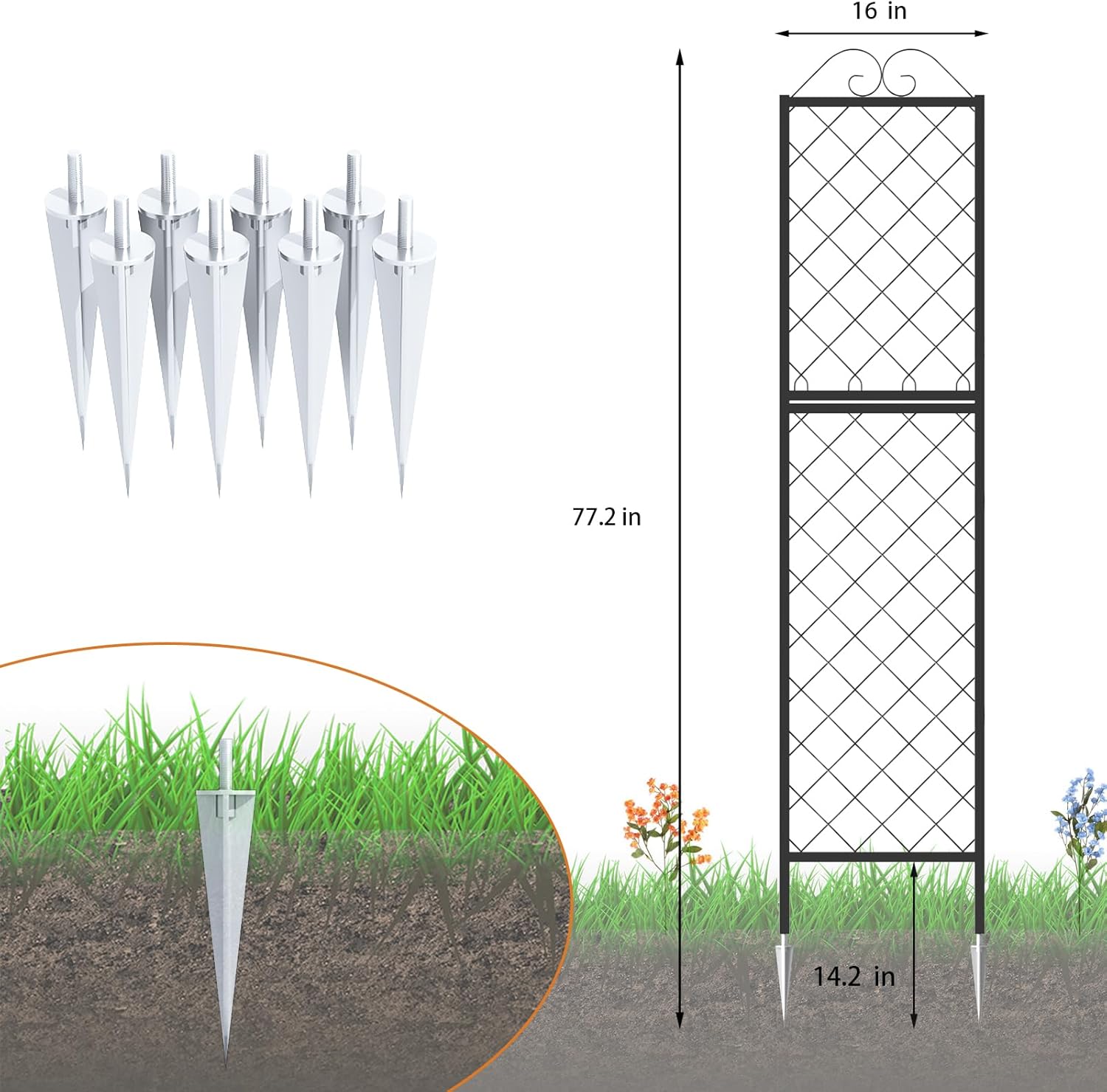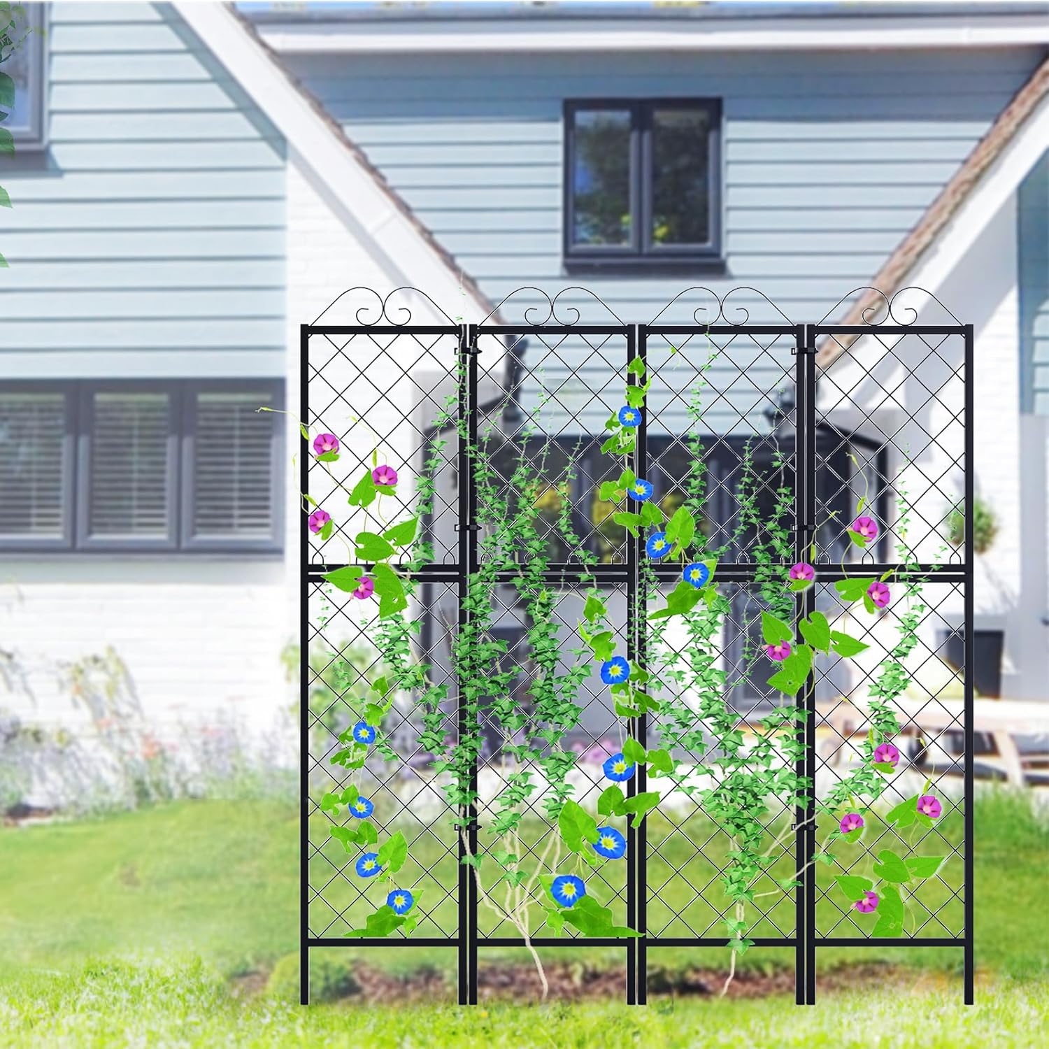 - 2 Pack Metal Garden Trellises for Climbing Plants, 77.2 Inch Tall Metal Fence Plant Support Trellis for Flower and Vagetable.