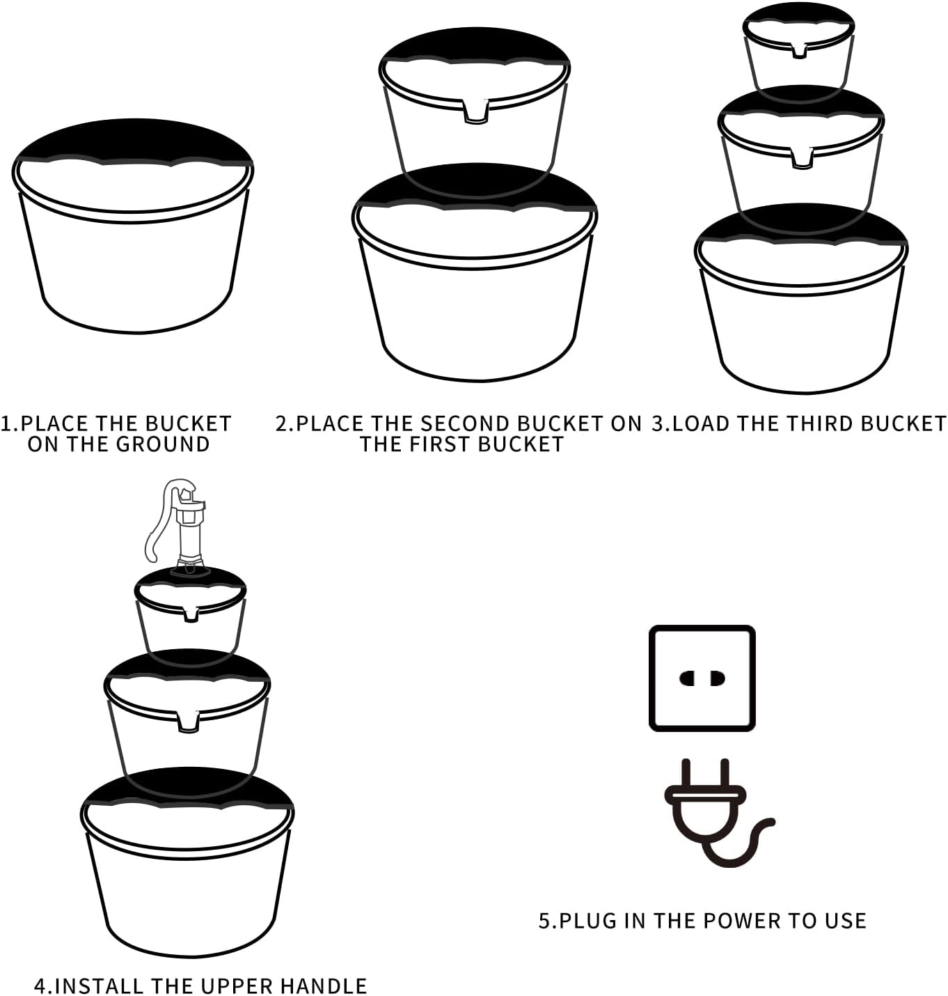 - The barrel fountain includes an electric pump with a self-contained water recirculation system. Water trickles from the pump spout into the barrel tiers, and has an 11L water capacity. plastic liner that contains gently flowing water and protects from wear and damage from extensive use.