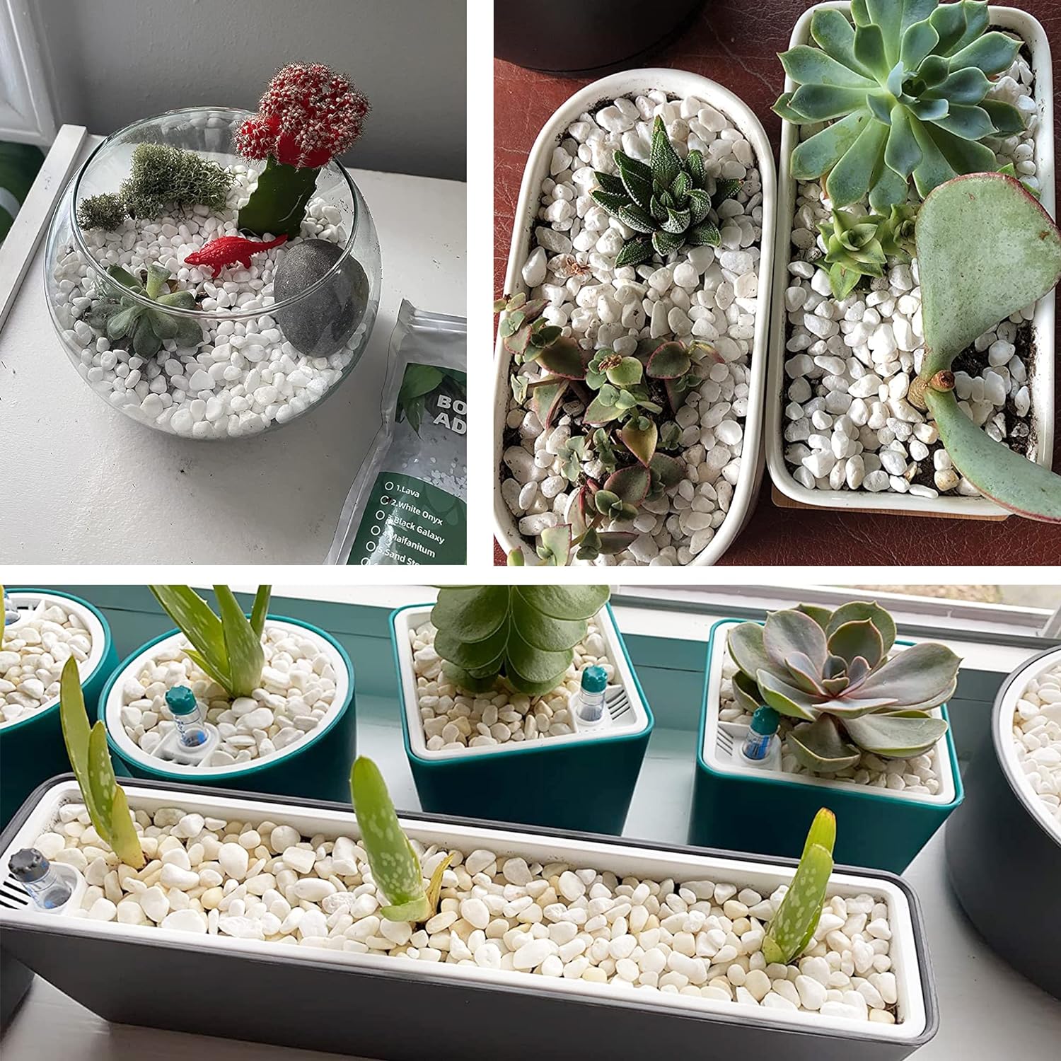 - 🌷【WIDE USES】Common applications include succulent containers, potted plants,vases,cactus,bonsai,landscapeand terrariums.It is perfect for home decor and a creative interior and exterior design. The possibilities are endless with these floral arranging white gravel rocks!