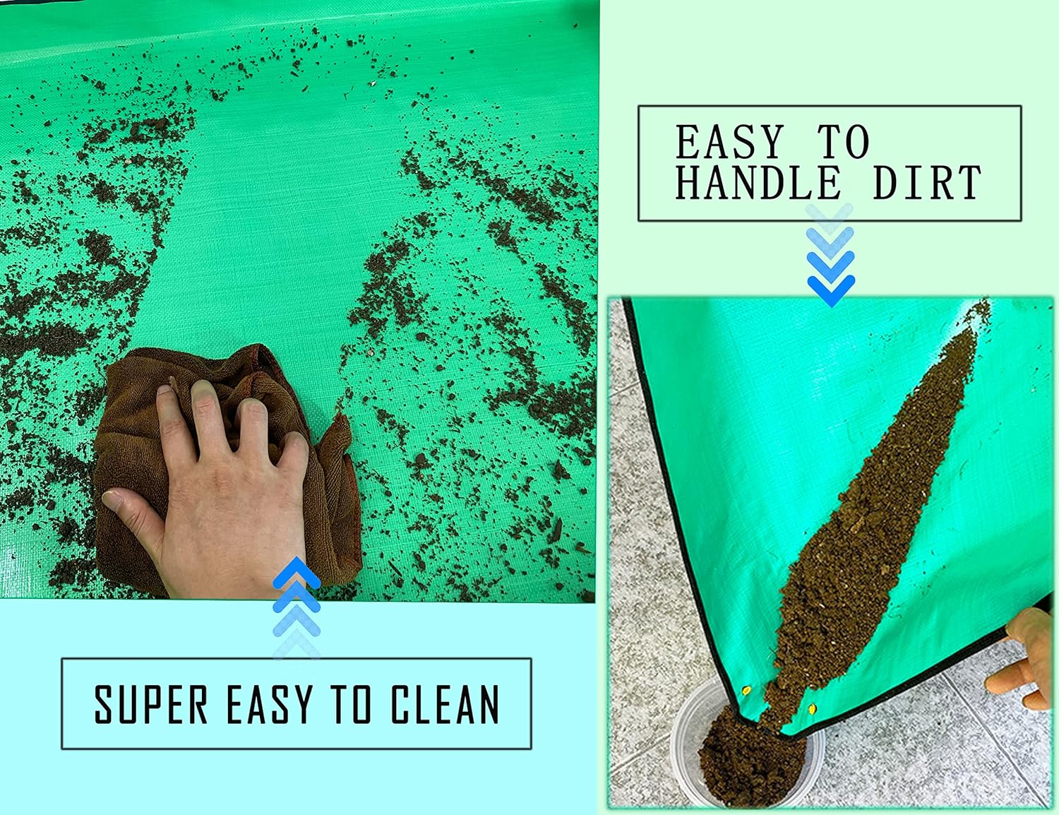 - 【Leak Proof Buckle Design】Our planting mat is waterproof and thick. Equipped with 2 copper buckles at each of the 4 corners, when you snap them up,the water and soil are not easy to spill.Effectively avoid soiling the floor when potting soil for indoor plants.