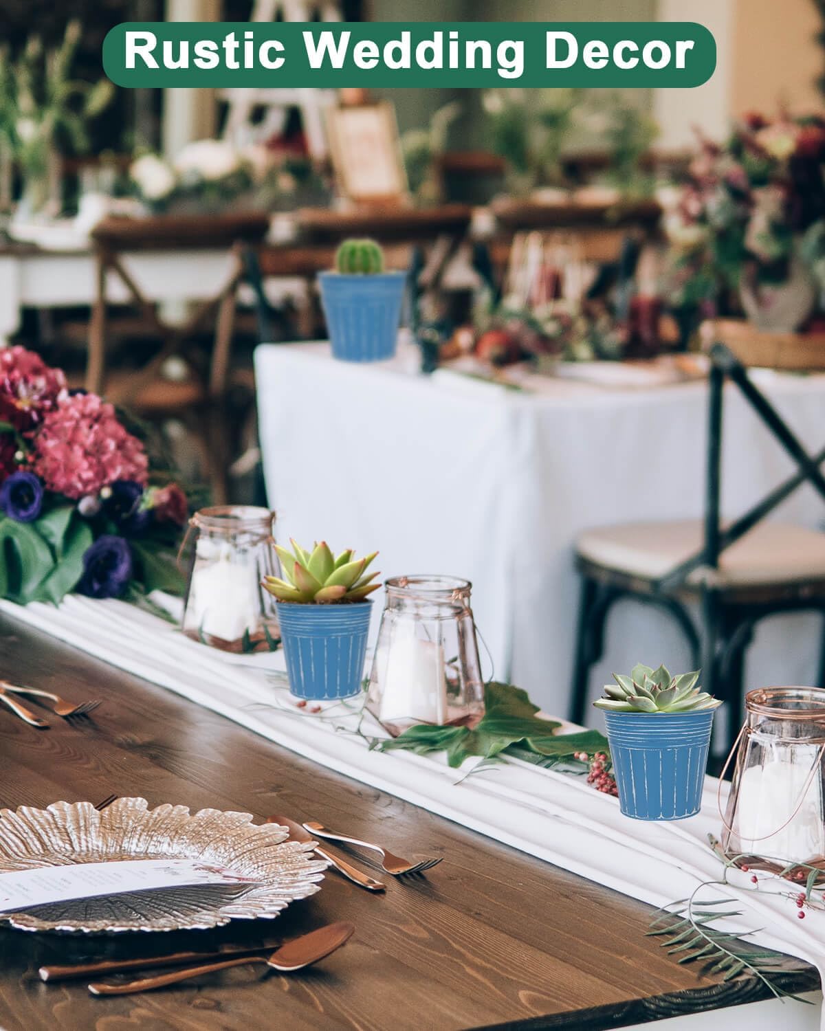 - 【Vintage & Minimalist Style】The classic steel blue metal appearance with a rustic design adds a unique farmhouse touch to your garden, balcony, or indoor space, blending seamlessly with various home décor styles.