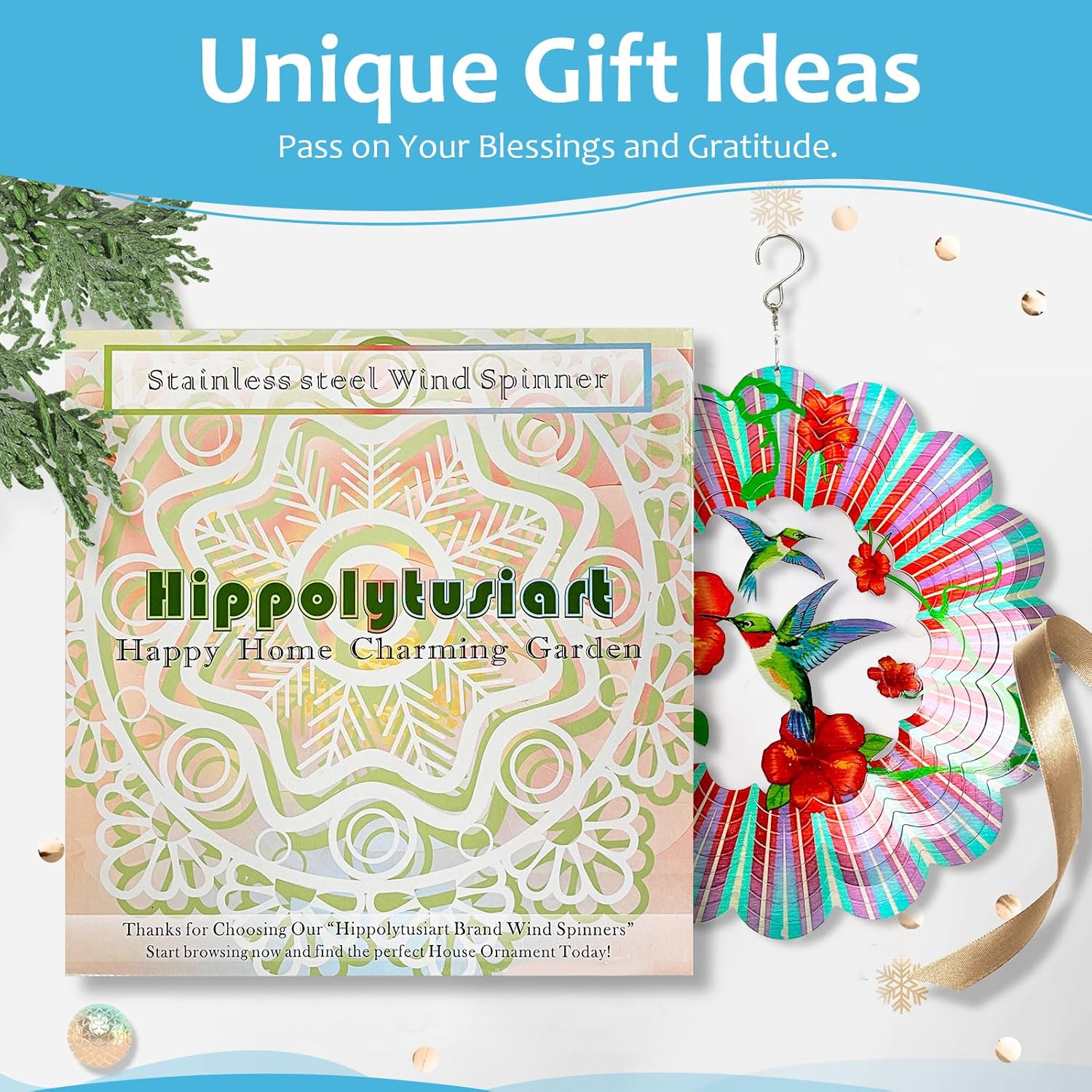 Hummingbird Wind Spinner,Hummingbird Gift for Women/Mother/Father,12In Stainless Steel 3D Wind Spinner Hanging Kinetic Yard Garden Christmas Ornaments,Outdoor & Indoor Wind Sculptures
