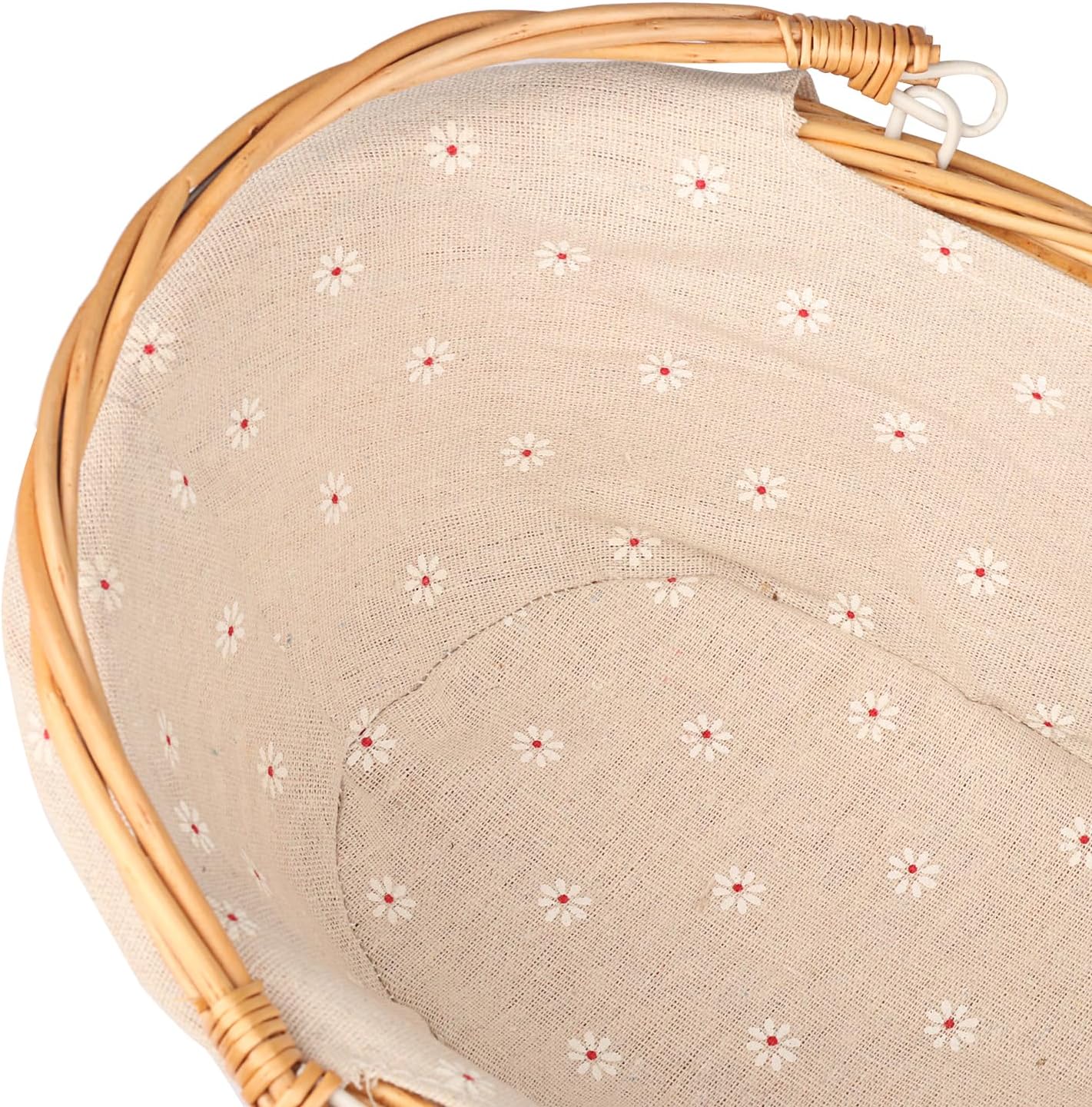 Large Multipurpose Wicker Basket with Handle, 14.2 x 11 x 6.7 Inch Wicker Picnic Basket with Liner, Empty Gift Basket, Oval Willow Woven Basket for Fruit, Wine, Gathering, Wedding, Picnic,by GNIEMCKIN